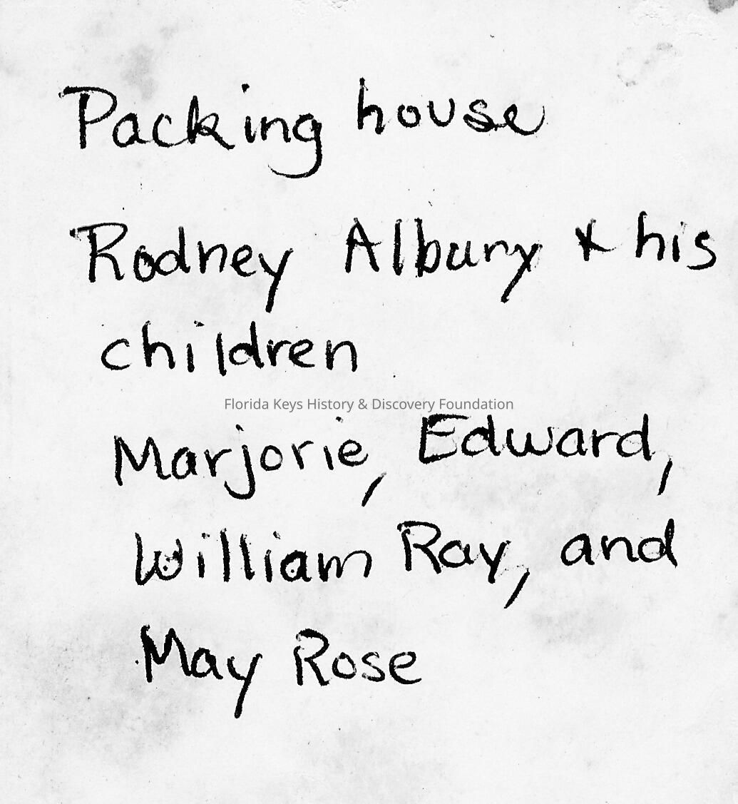 photo captioned "Packing house, Rodney Albury & his children, Marjorie, Edward, William Ray, and May Rose"Collection