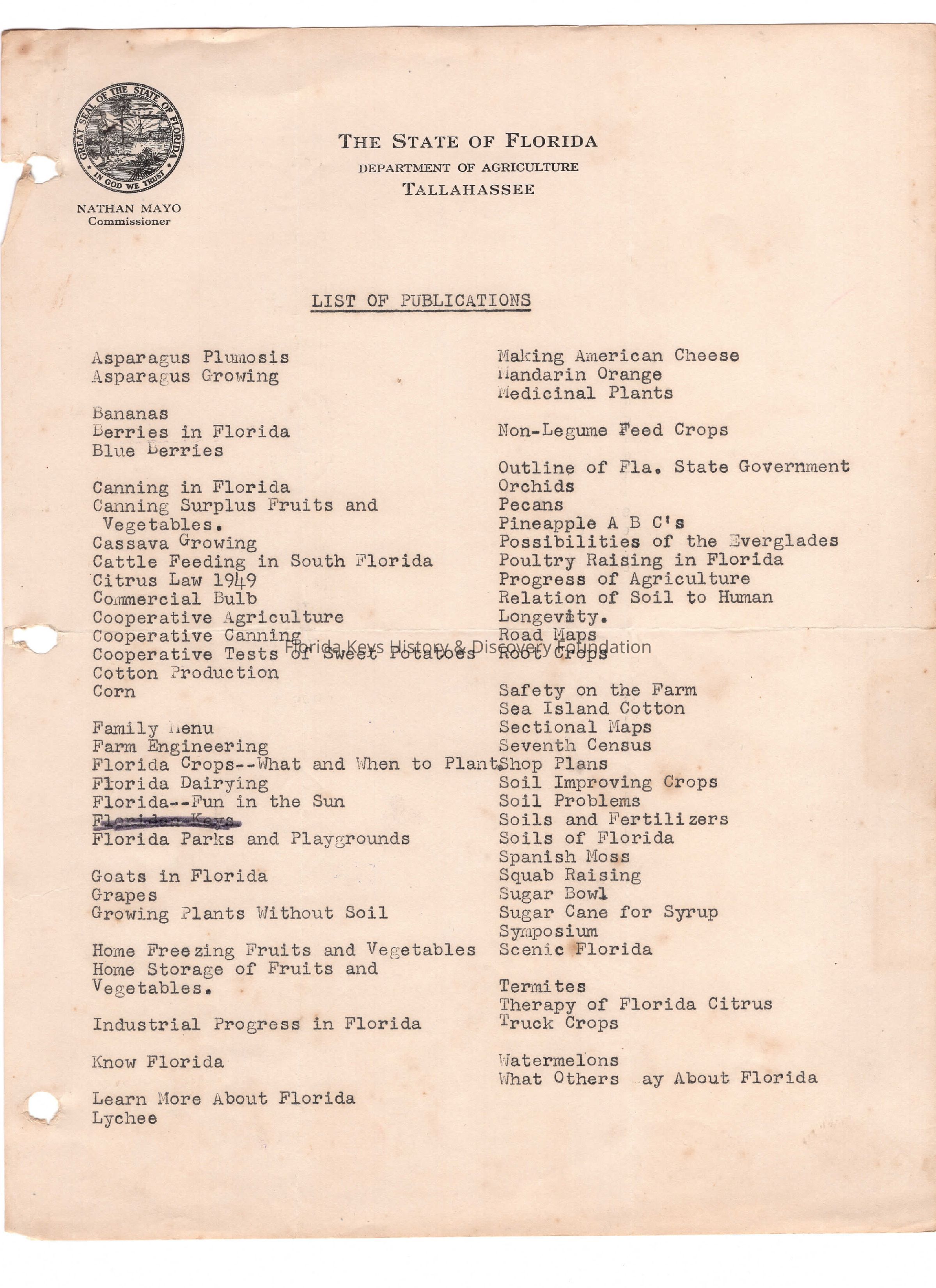 List of Publications from the Florida Department of AgricultureEntry/Object ID