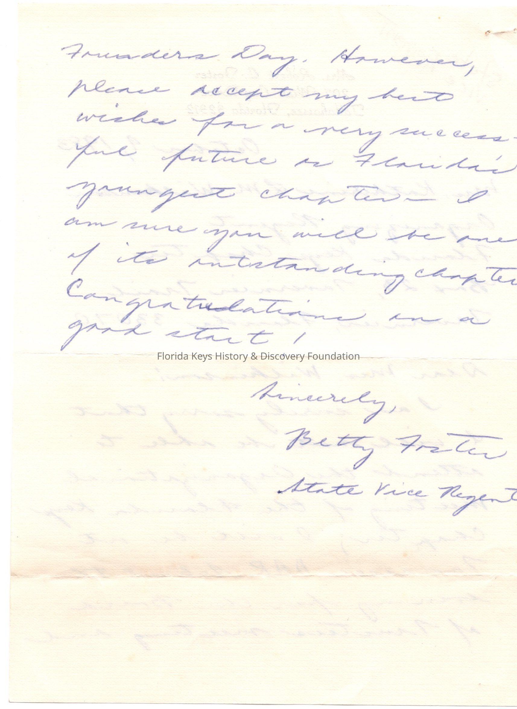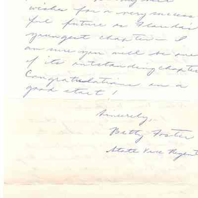 Letter from Betty Foster, State Vice RegentContext