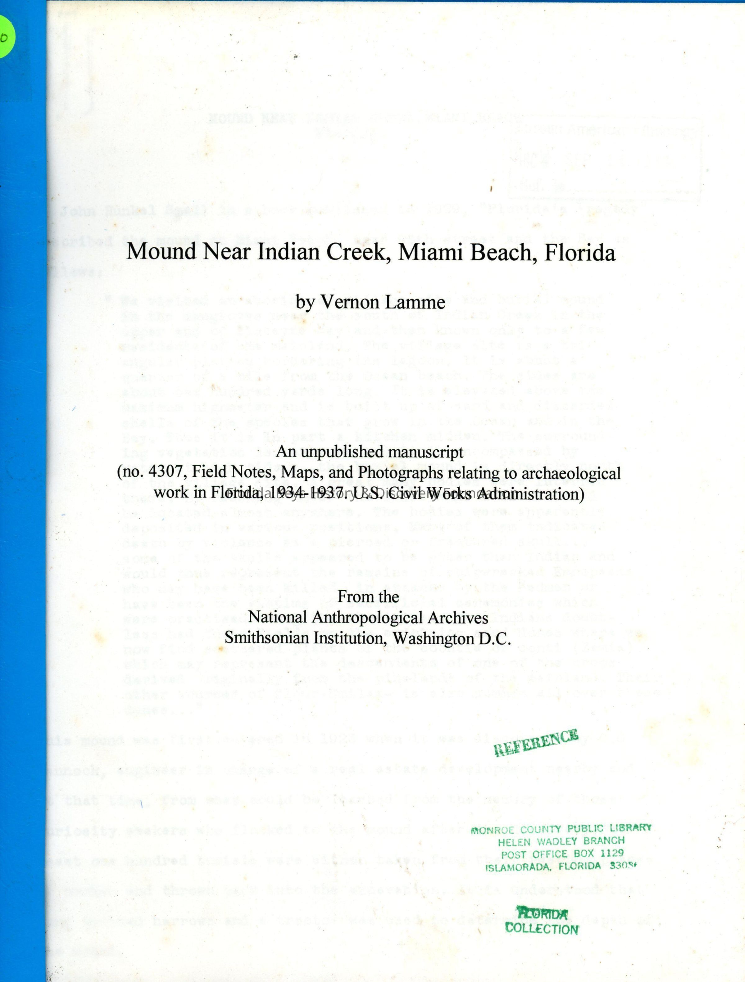 "An Unpublished Manuscript (no.4307, Field Notes, Maps, and Photographs relating to archaeological work in Florida, 1934-1937. U.S. Civil Works Administration)Context