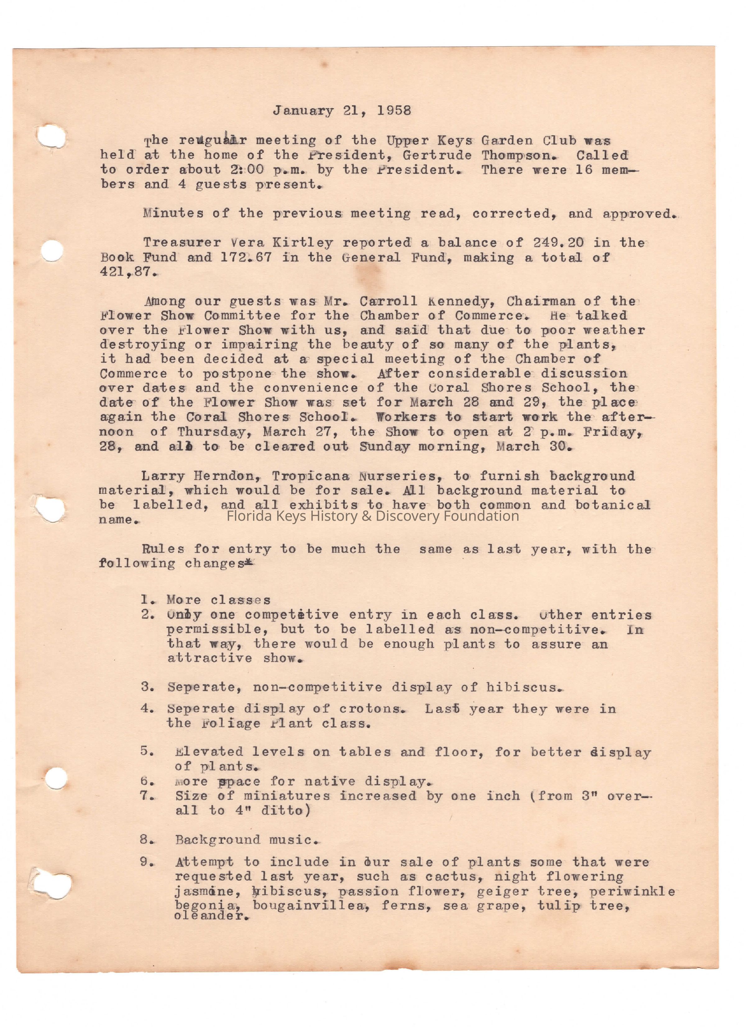 Minutes from club meeting held on January 21st, 195 at the home of Gertrude Thompson.Collection