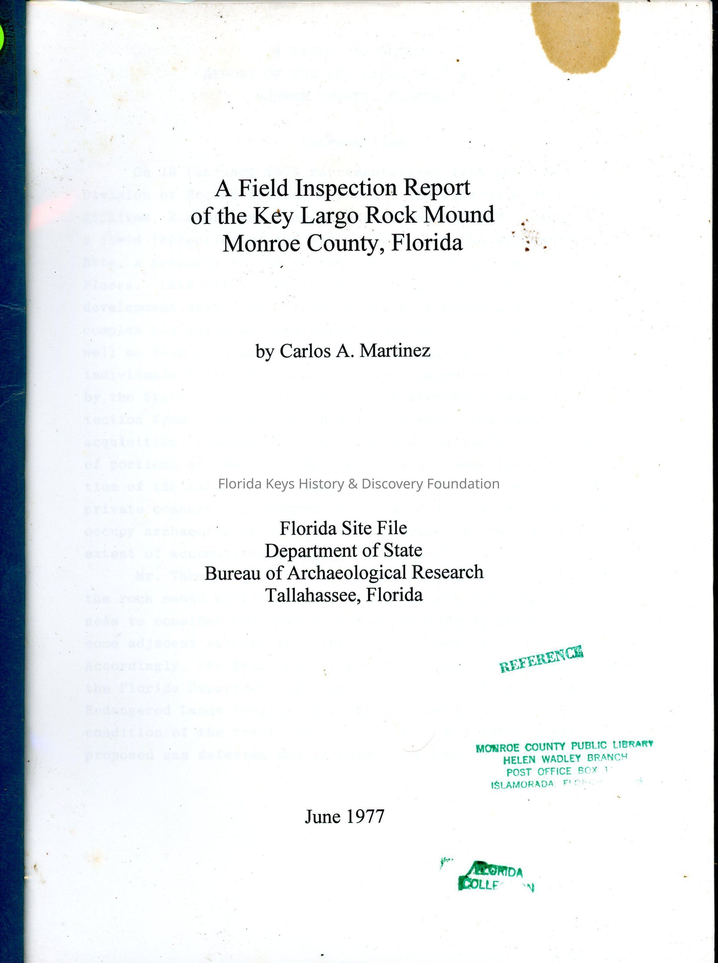 A Field Inspection Report of the Key Largo Rock Mound Monroe County, FloridaEntry/Object ID
