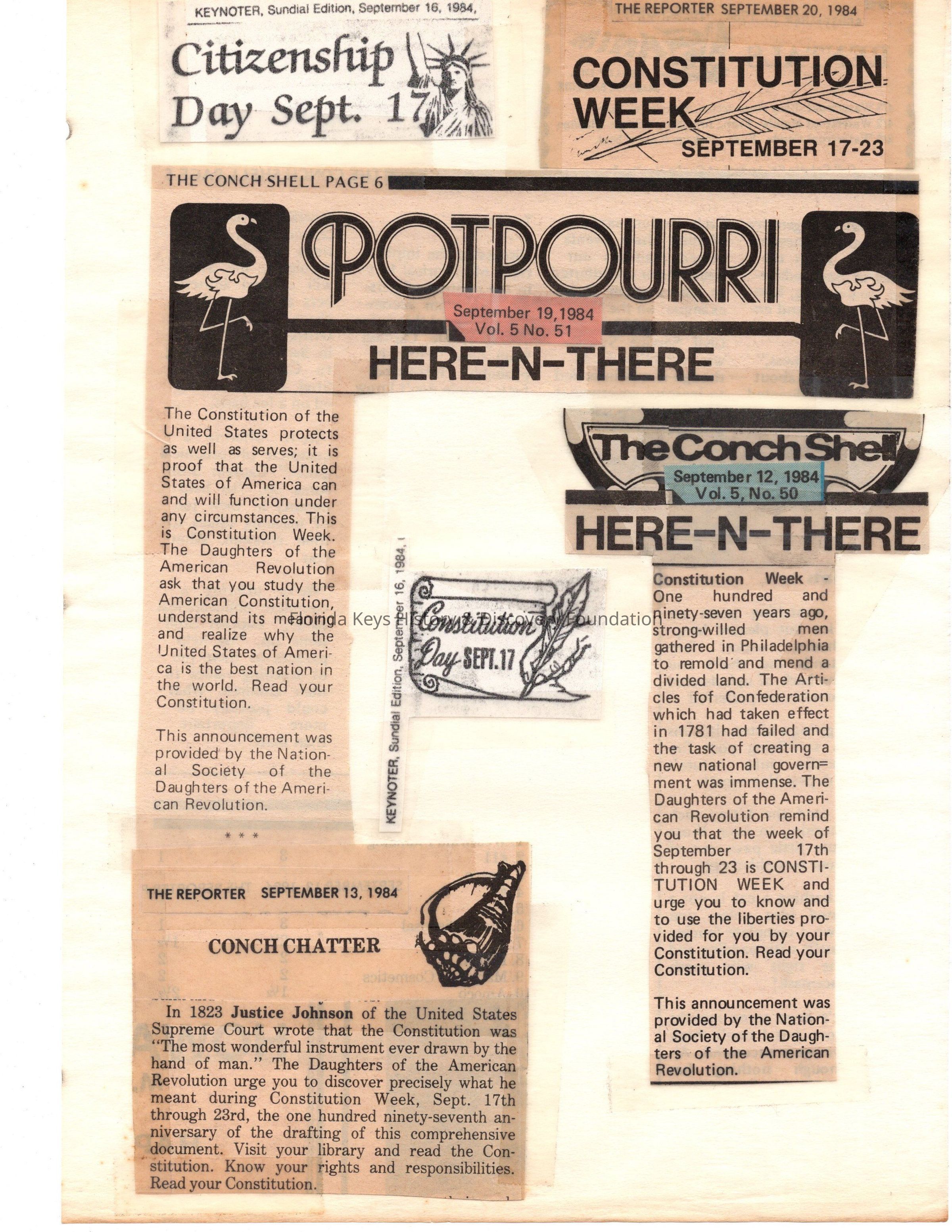 1984, DAR, Constitution Week, Newspaper, Florida Keys ChapterDescription