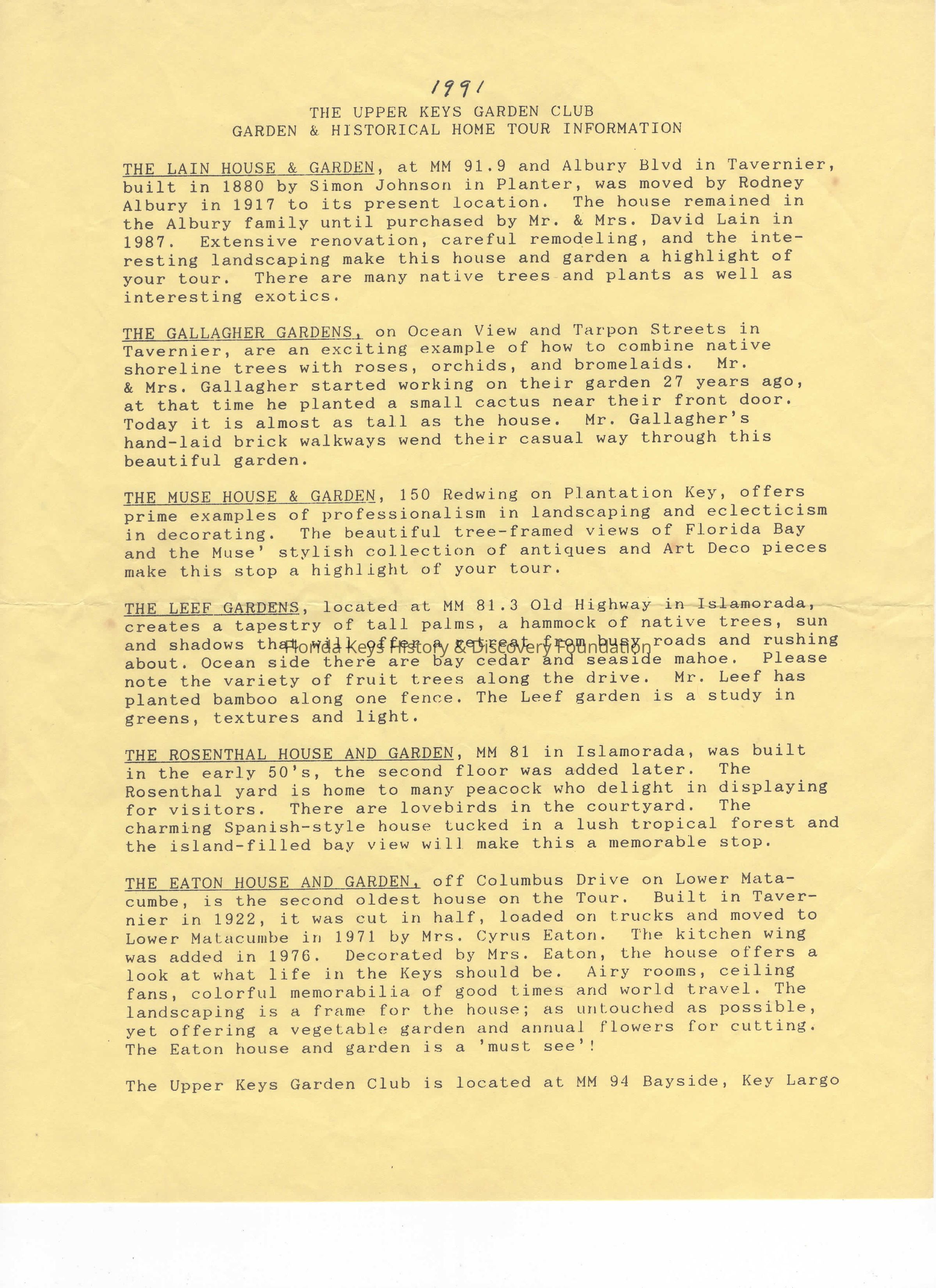 GCUK, Tour, Garden Walk, 1990s, 1991, Upper Keys Garden ClubContext