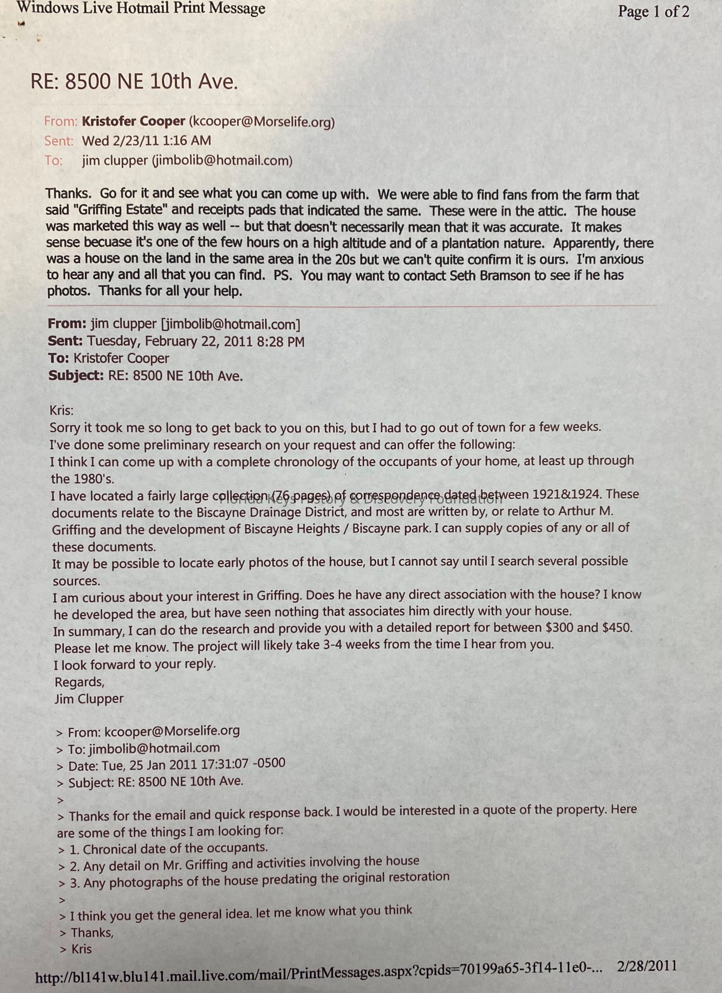Folder of notes, correspondence and documents labeled "Documents Sent to Miami" by Jim ClupperContext