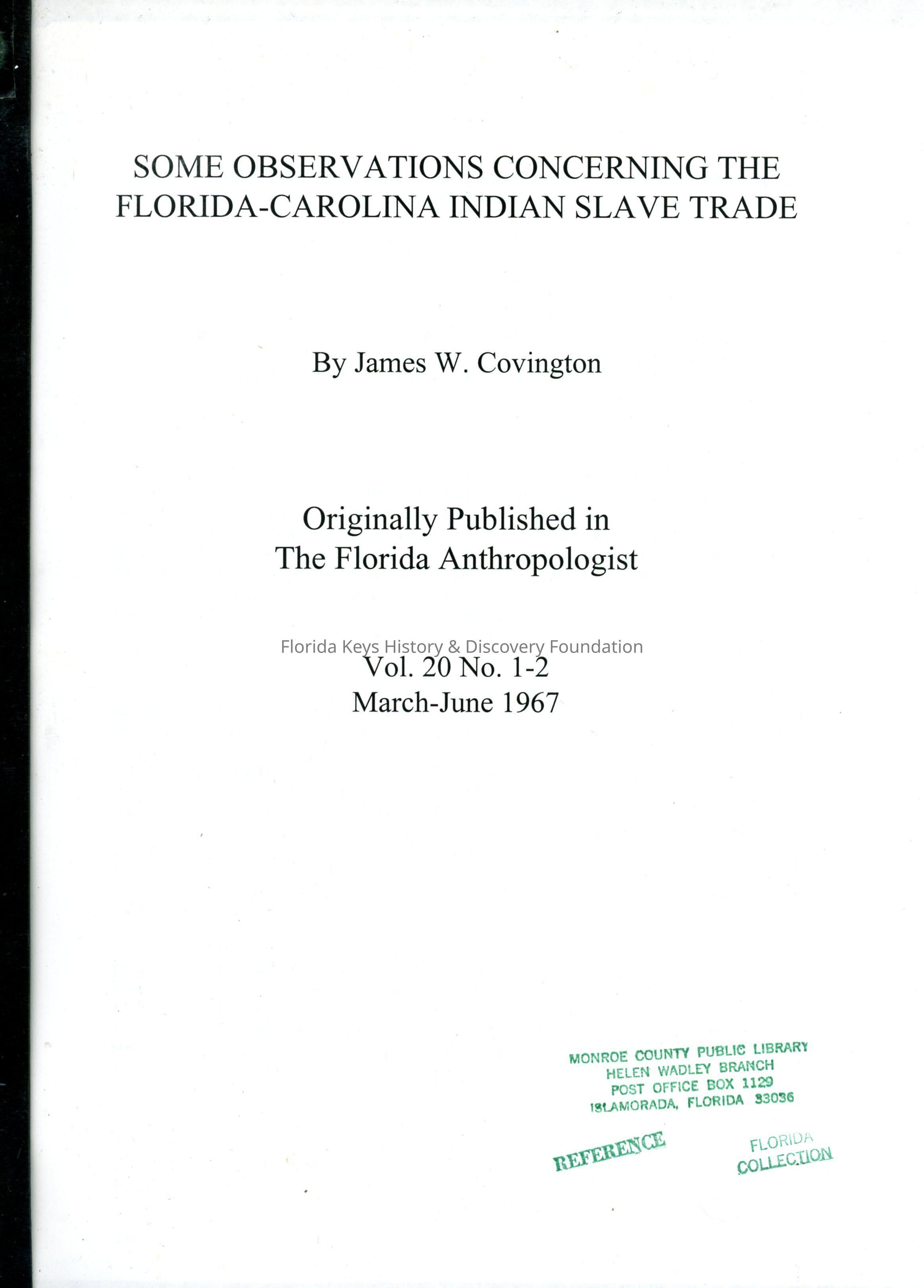 Some Observations Concerning the Florida-Carolina Indian Slave TradeEntry/Object ID