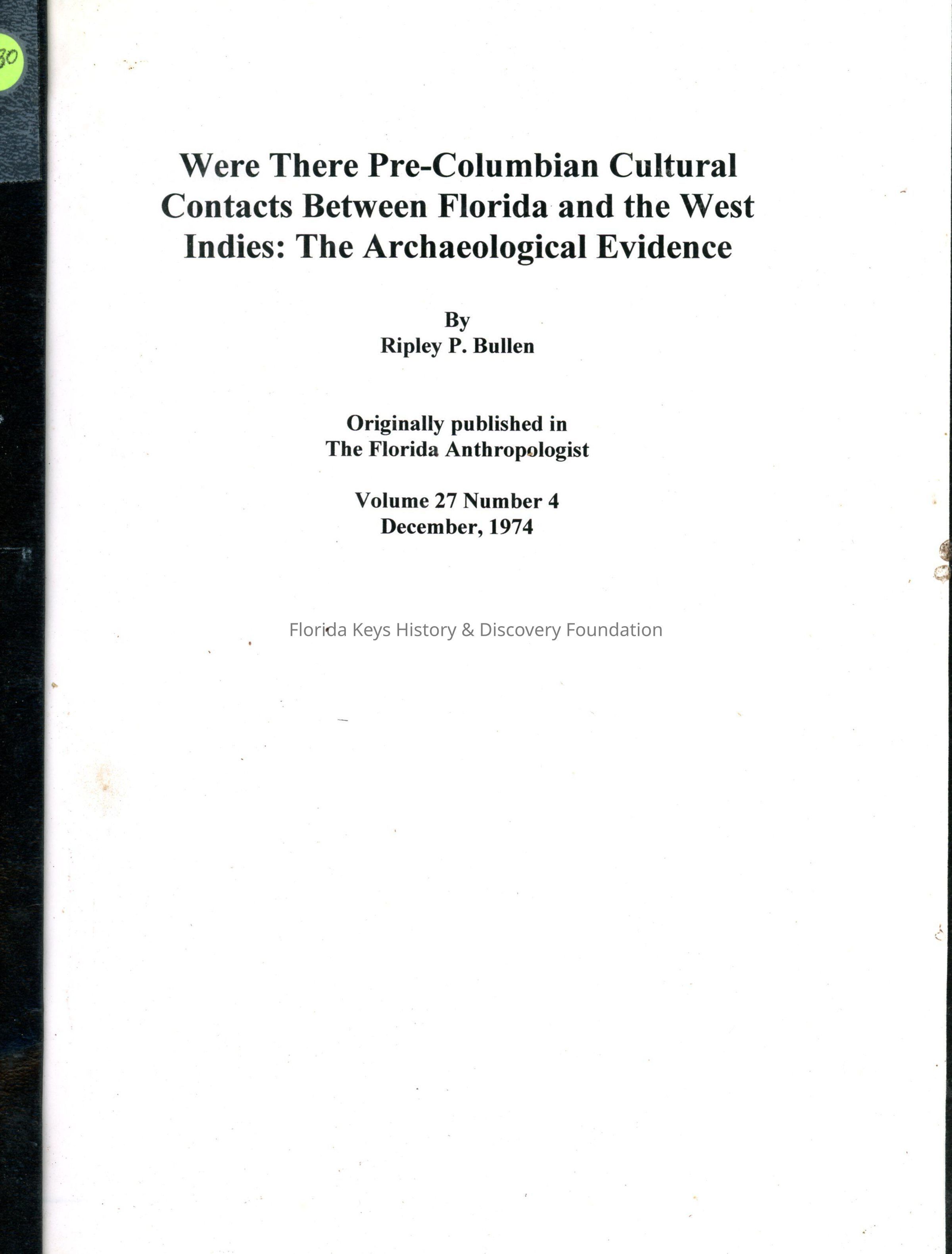 Were There Pre-Columbian Cultural Contacts Between Florida and the West Indies: The Archaeological EvidenceEntry/Object ID