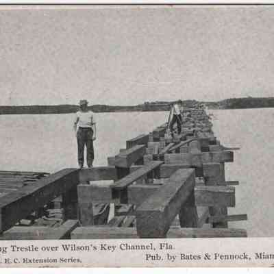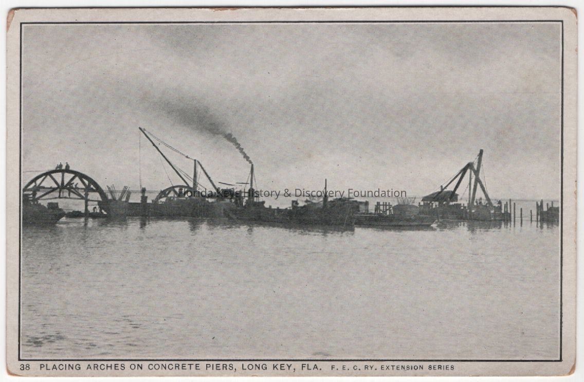 Set of 41 postcards from the early 1900s depicting the construction of the Key West Extension (Flagler's Overseas Railway). Approved by FEC, published in Miami.Context