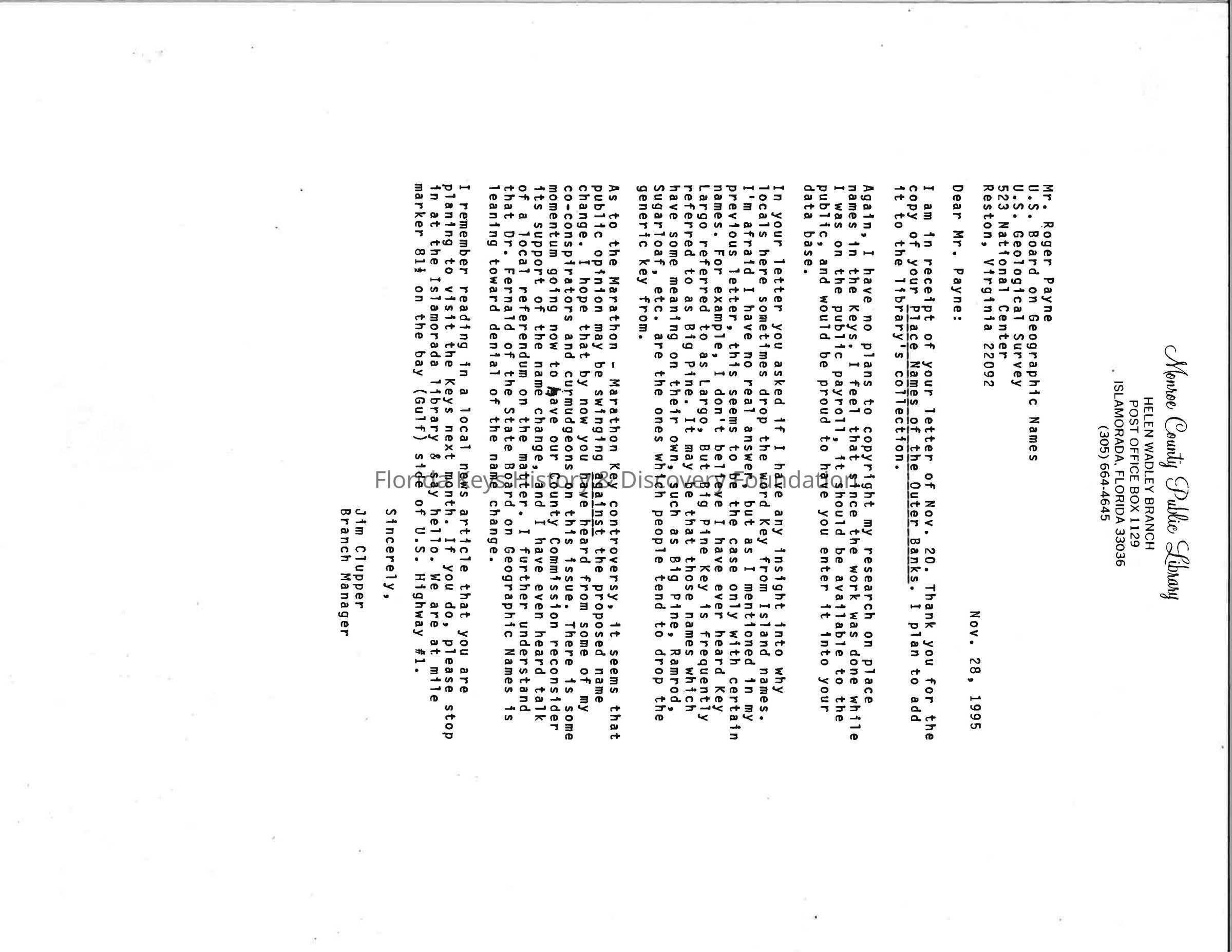 News clips and correspondence from Marathon Key citizens about the Marathon Key naming issueContext