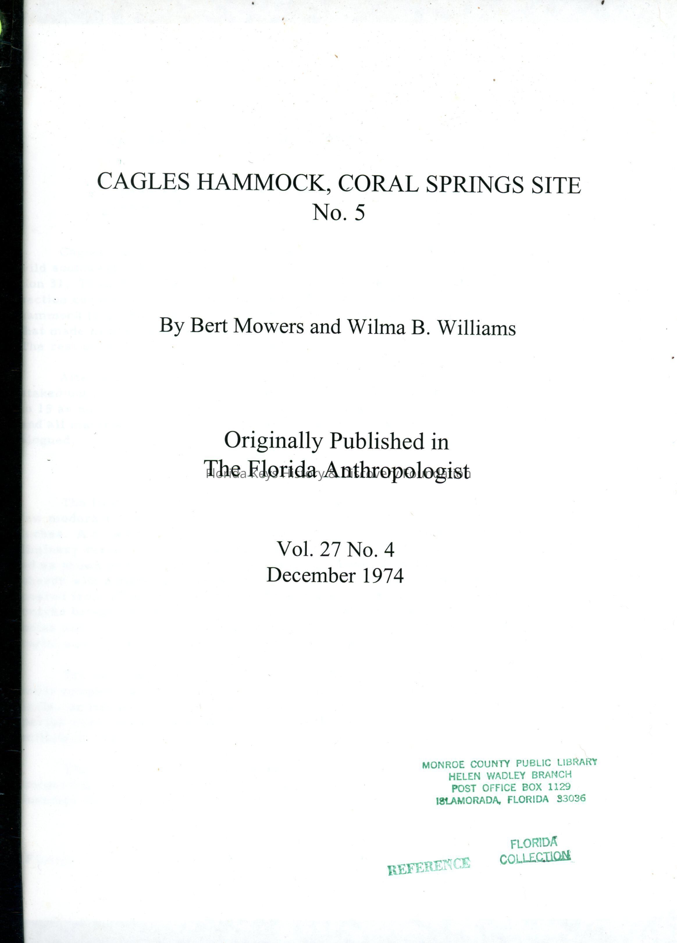 Cagles Hammok, Coral Springs Site No. 5Entry/Object ID