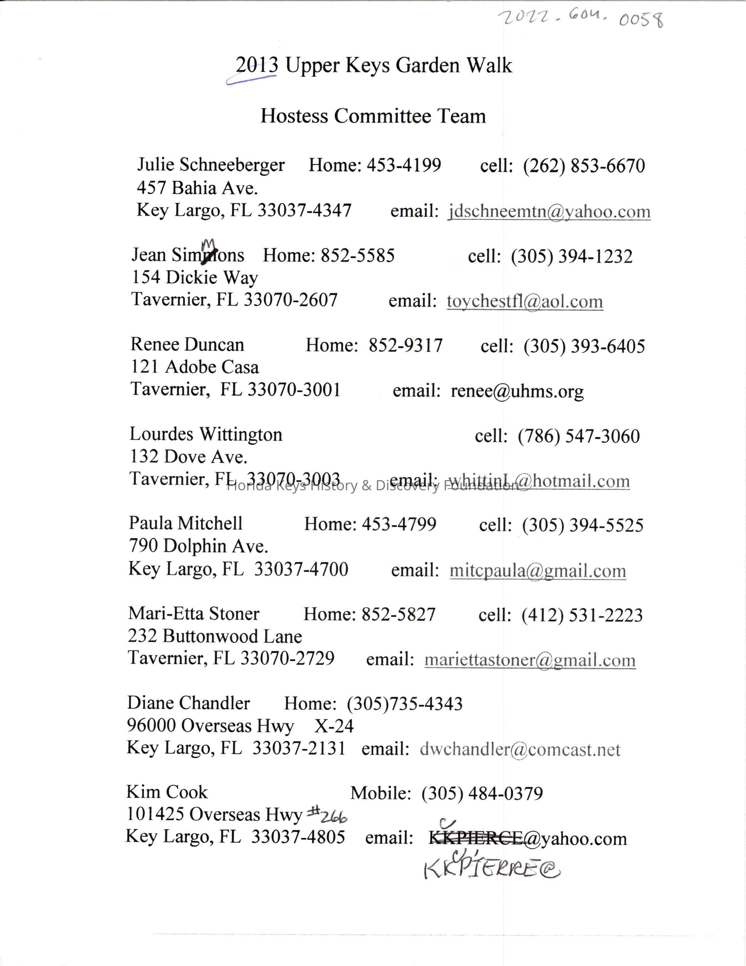 2013 Upper Keys Garden Walk Hostess Committee TeamEntry/Object ID