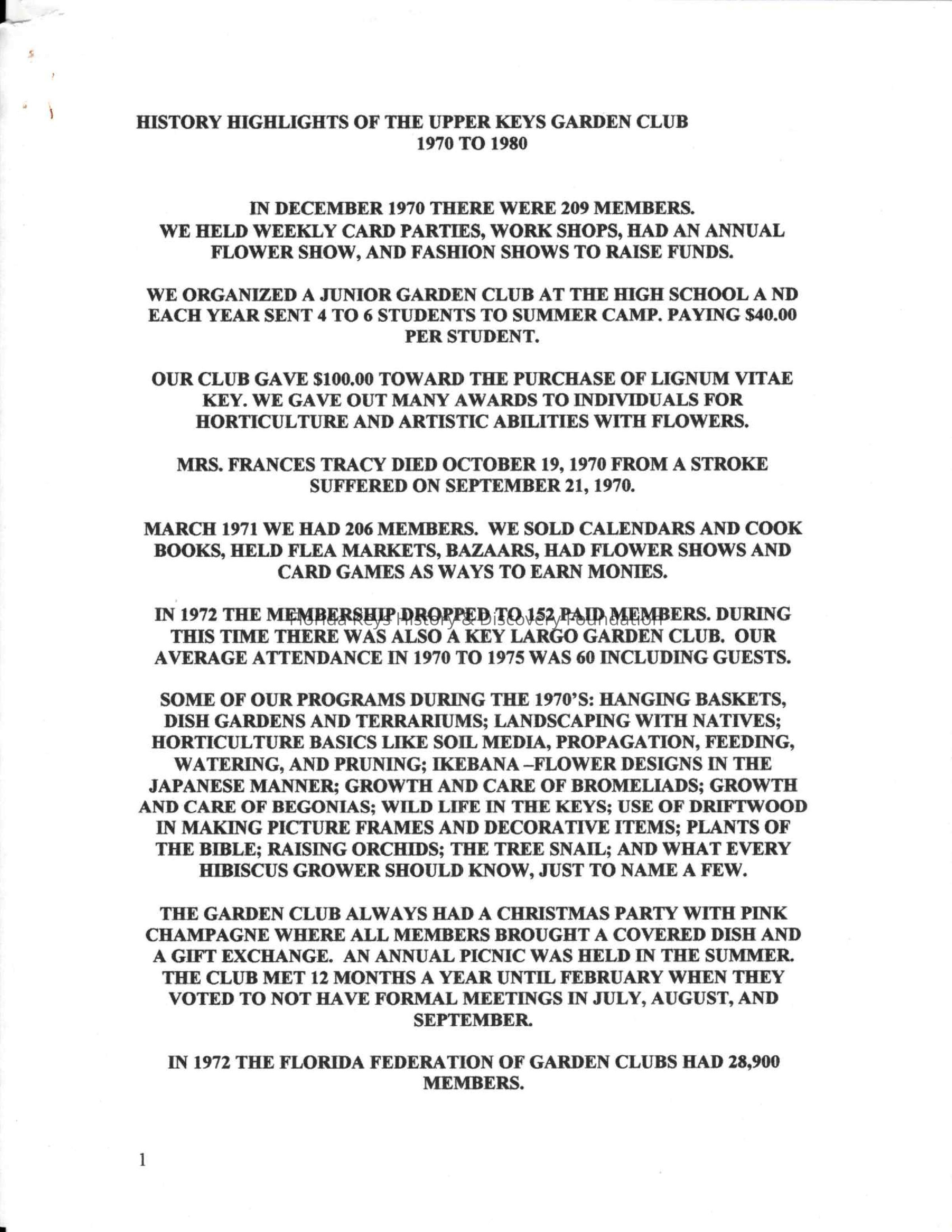 History of the Upper Keys Garden club 1970-1980Entry/Object ID