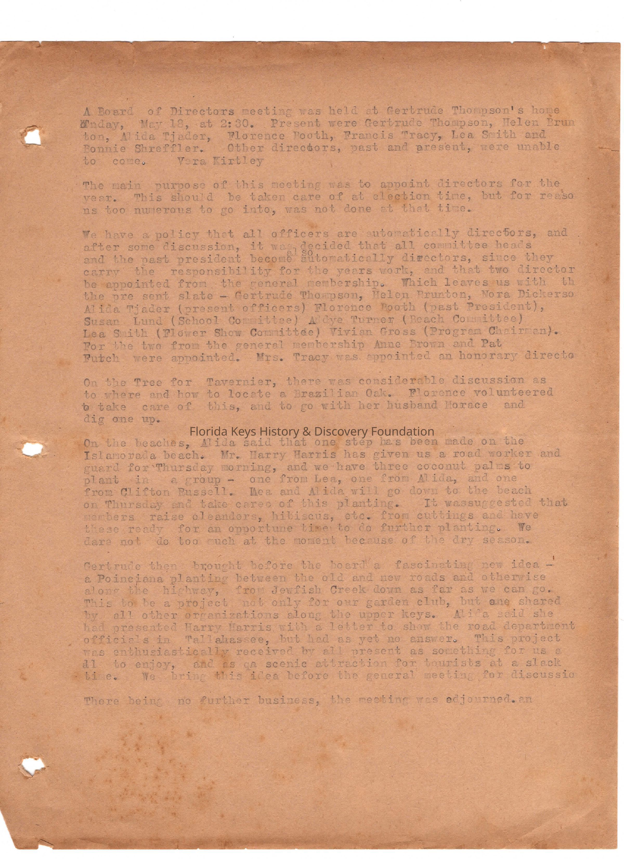 Gertrude Thompson, Helen Brunton, Alida Tjader, Florence Booth, Frances Tracy, Lea Smith, Bonnie Shreffler, Vera Kirtley, Garden Club of the Upper KeysCreated By
