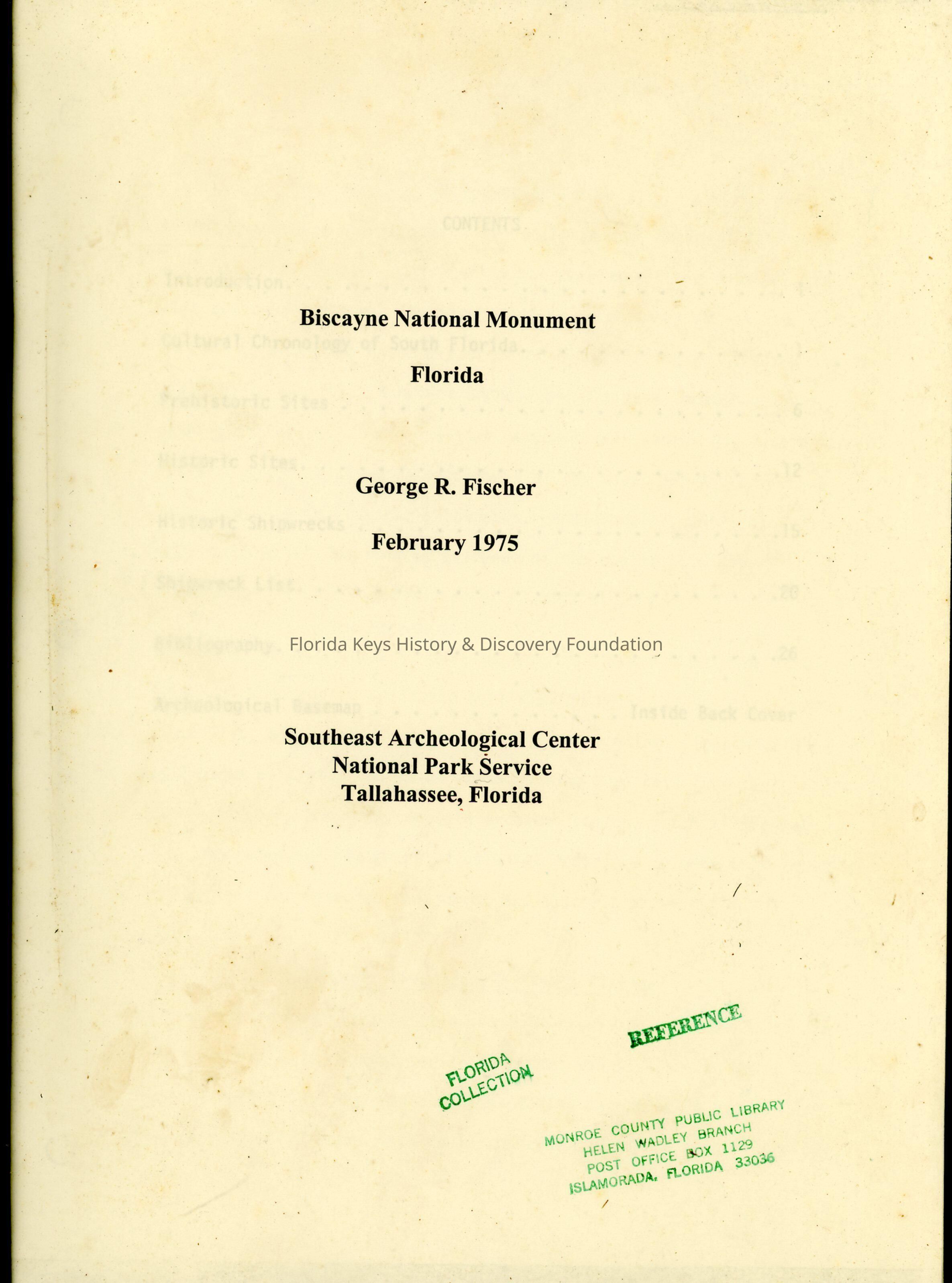 Biscayne National Monument FloridaEntry/Object ID