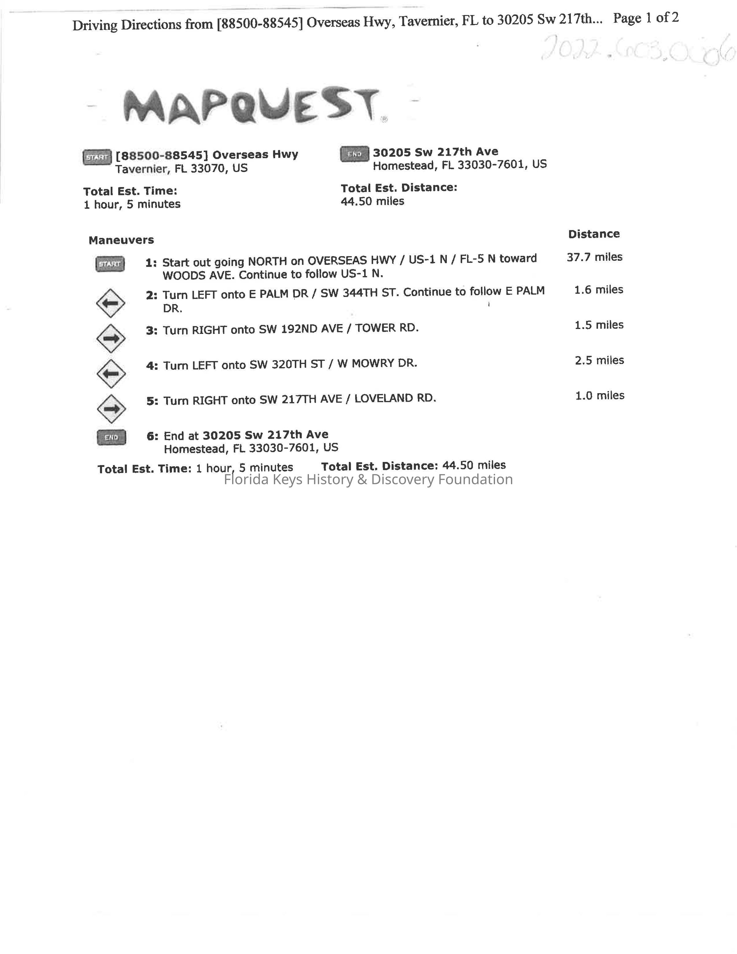 September 18, 2006 MapQuest directions.