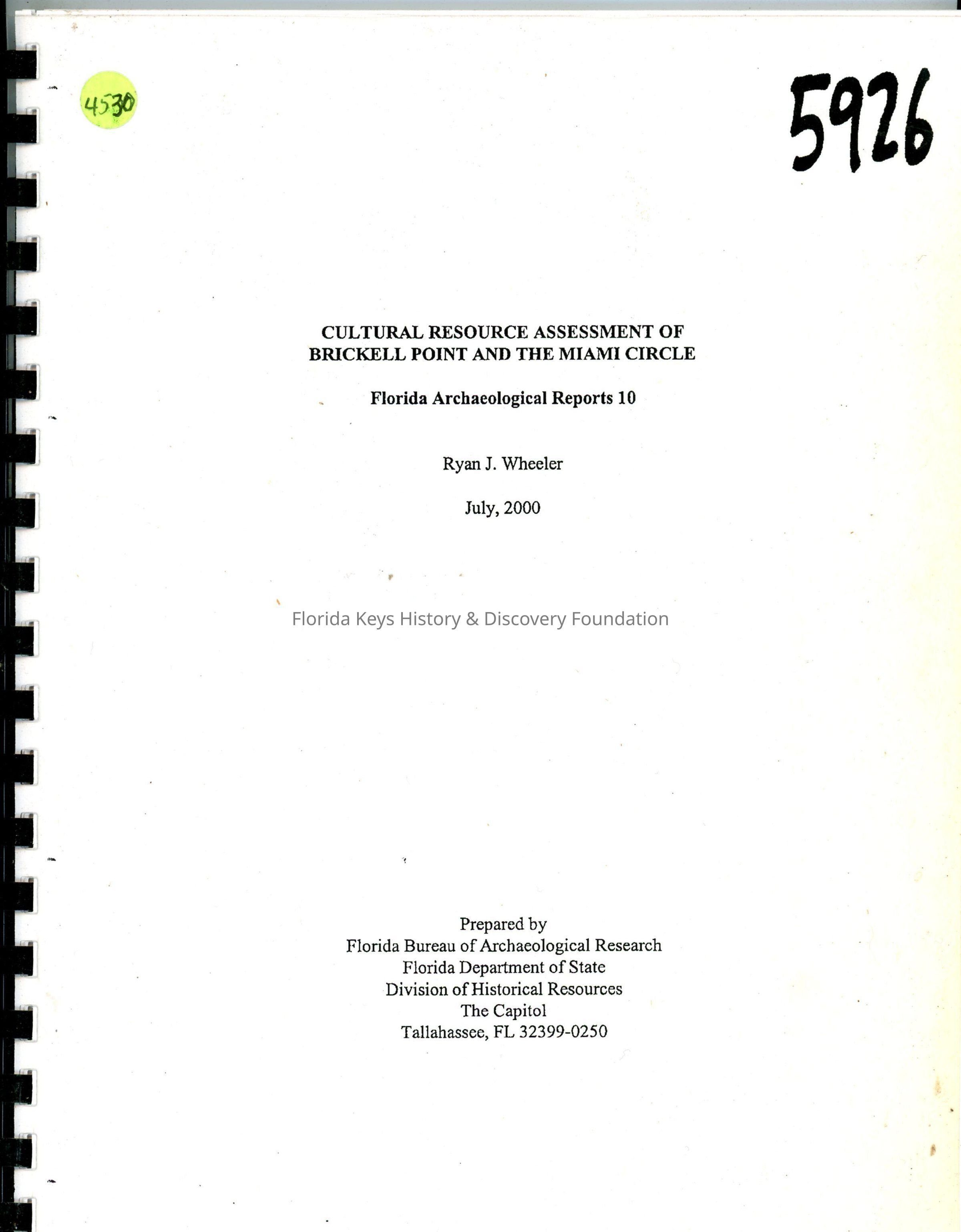 Cultural Resource Assessment of Brickell Point and the Miami CircleEntry/Object ID