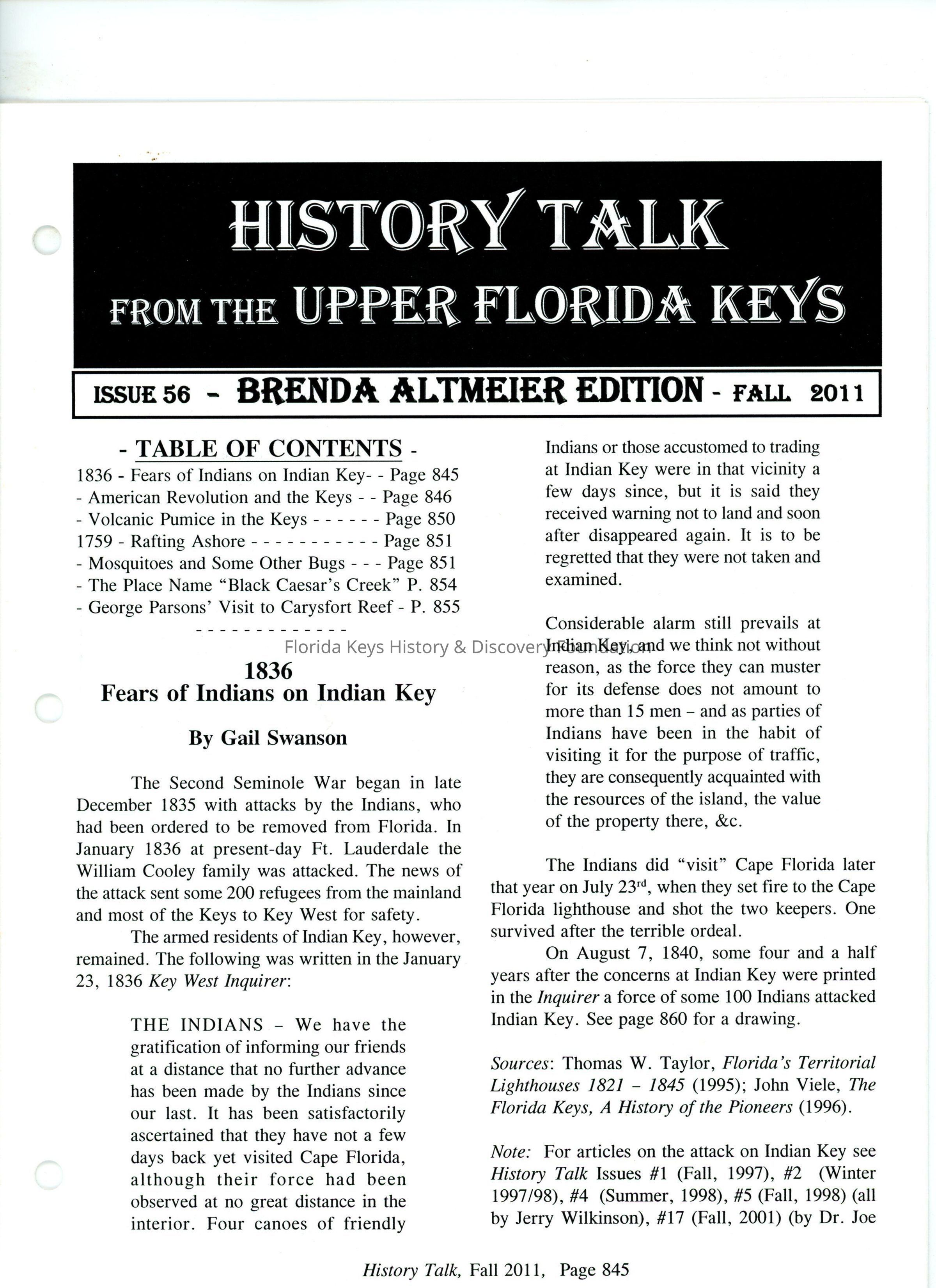 1836- Fears of Indians on Indian Key- Page 845