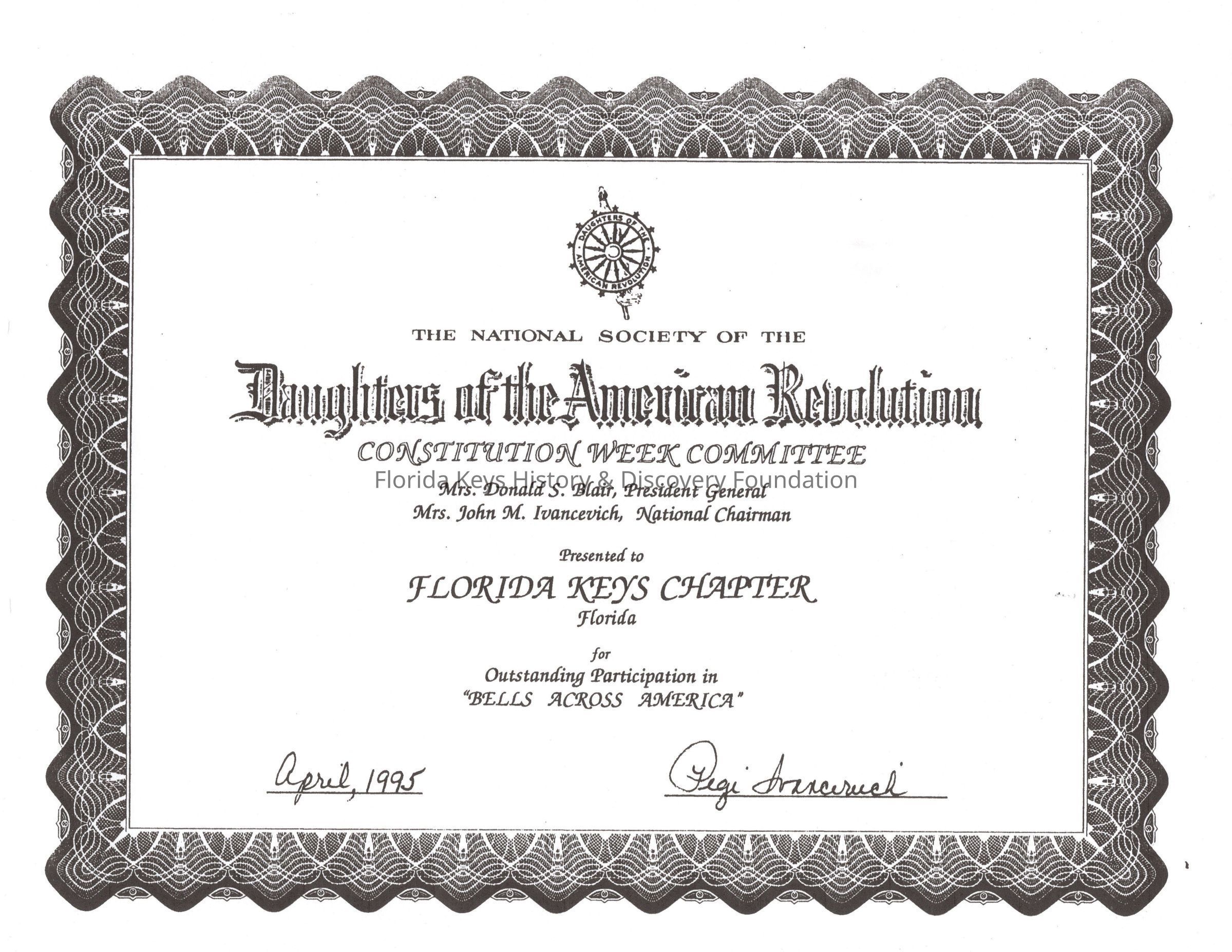 1995, DAR, Award, CertificateContext