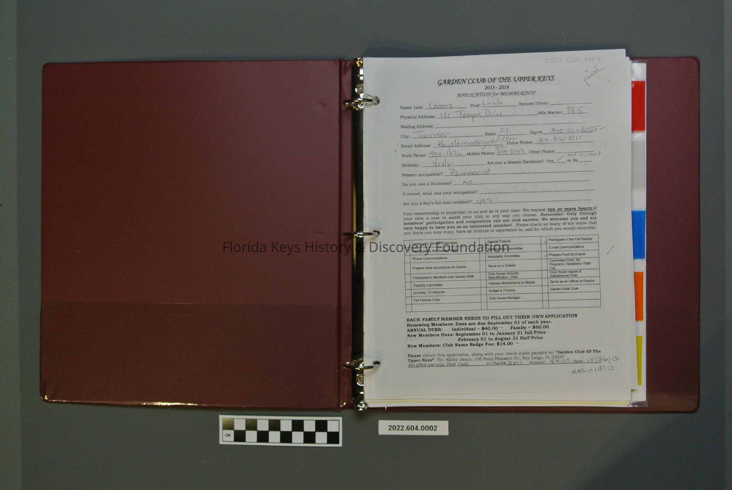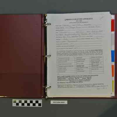 Collection of GCUK papers from 2013-2014. Contains 9 filled-in membership applications, handwritten notes, Tea Party committee sheets, a membership list from 3/05/2013, and 2014 Garden Walk meeting minutes.
