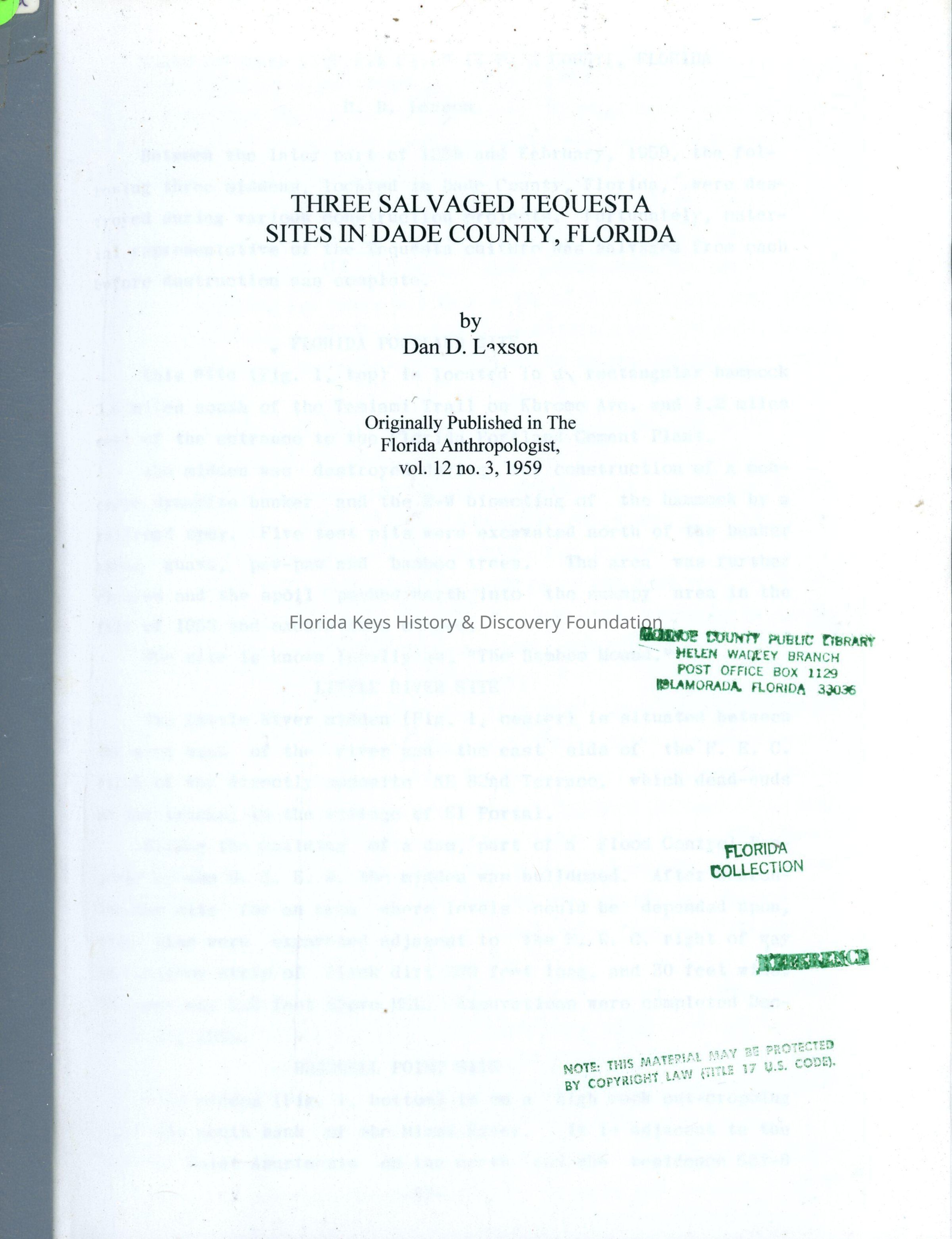 Three Salvaged Tequesta Sites in Dade County, FloridaEntry/Object ID