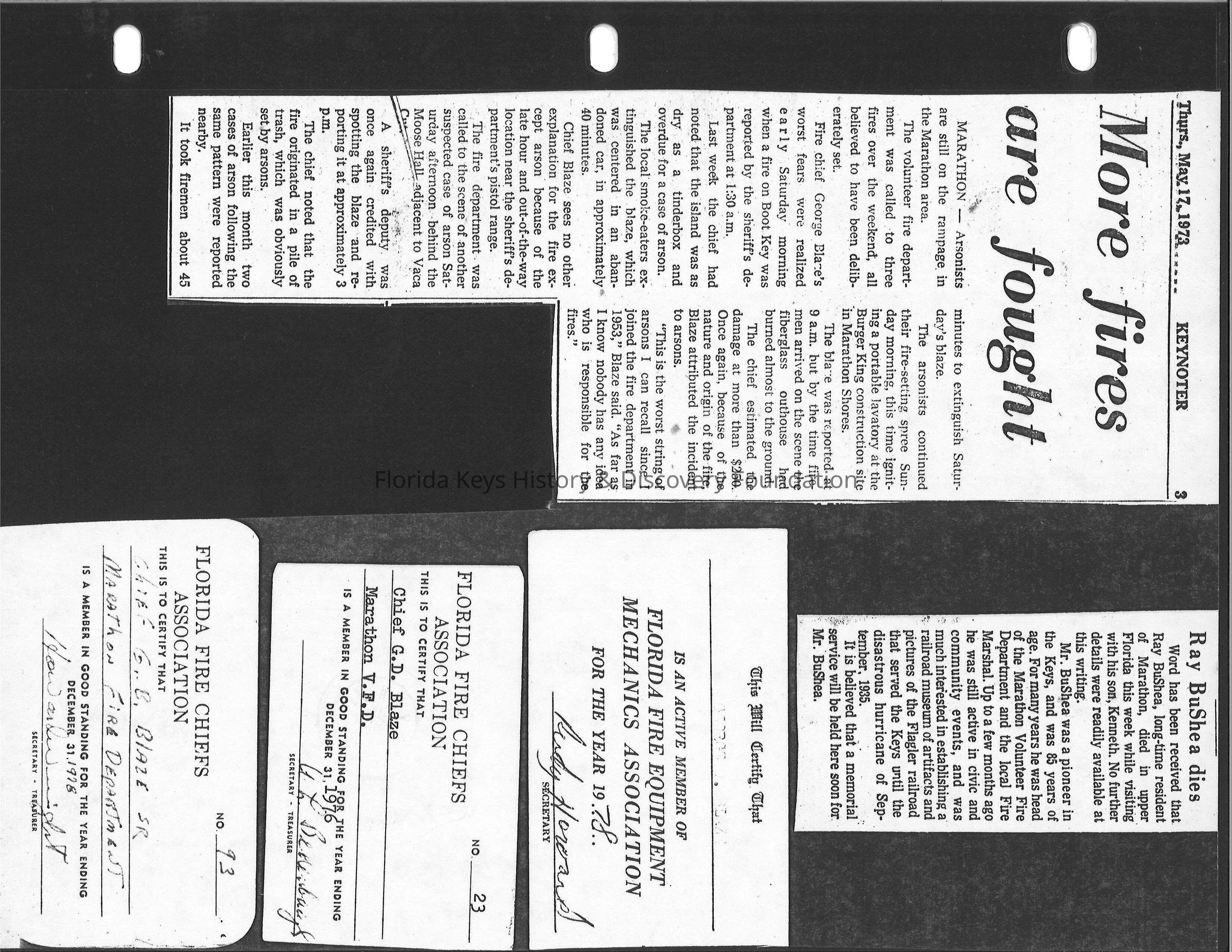 Florida Keys Fire Department ScrapbookEntry/Object ID
