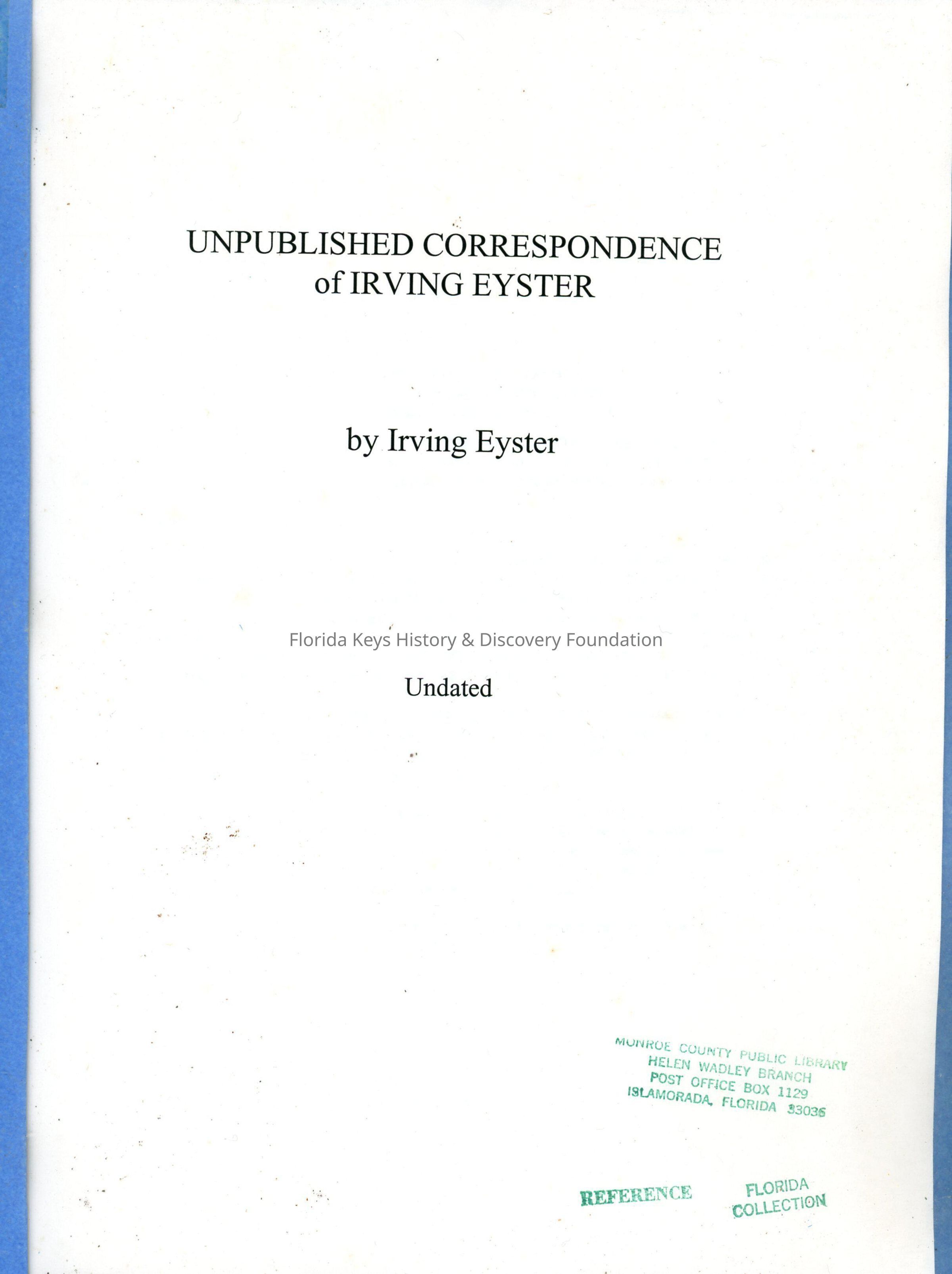 Unpublished Correspondence of Irving EysterEntry/Object ID