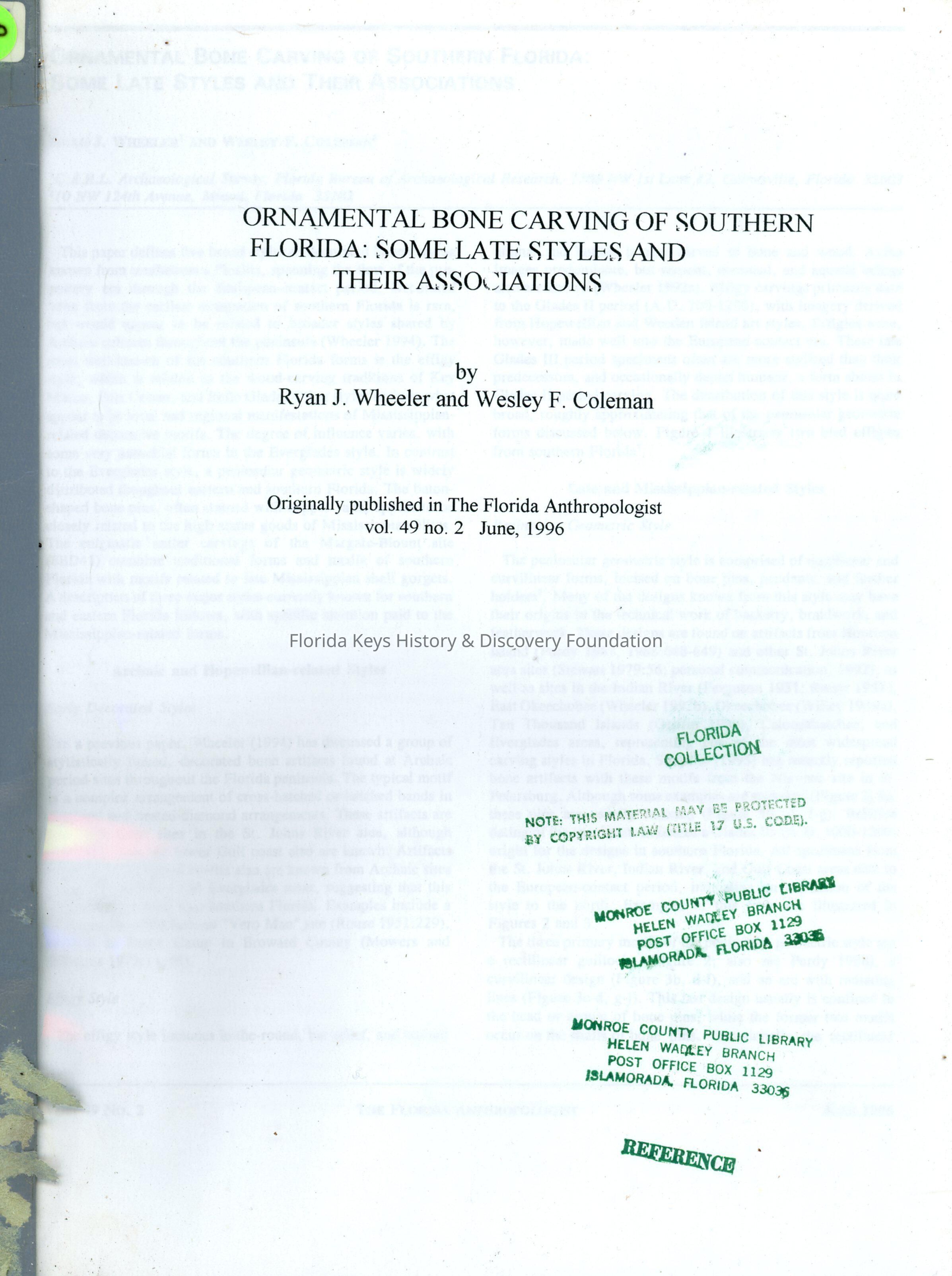 Ornamental Bone Carving of Southern Florida: Some Late Styles and Their AssociationsEntry/Object ID