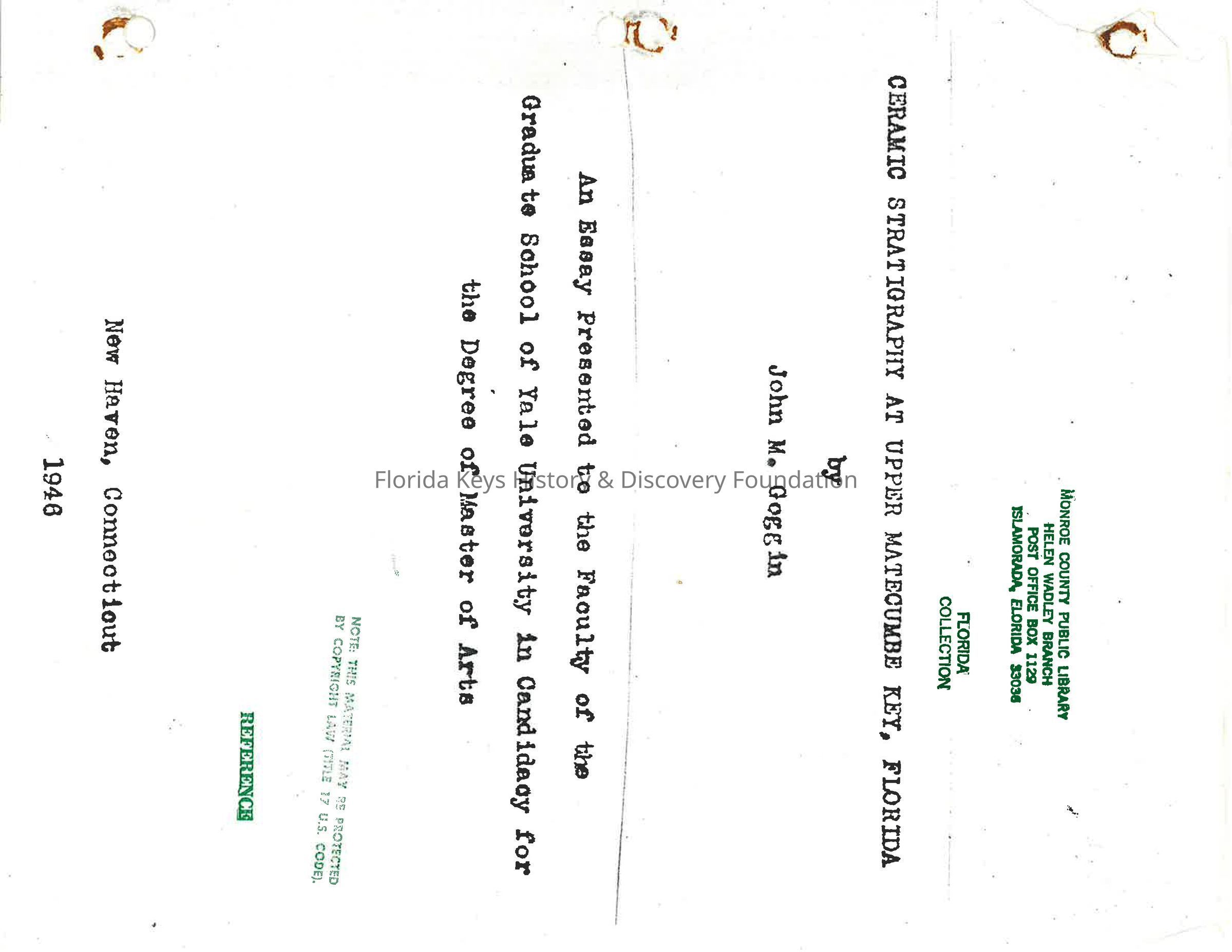 Ceramic Stratigraphy at Upper Matecumbe Key, FloridaEntry/Object ID