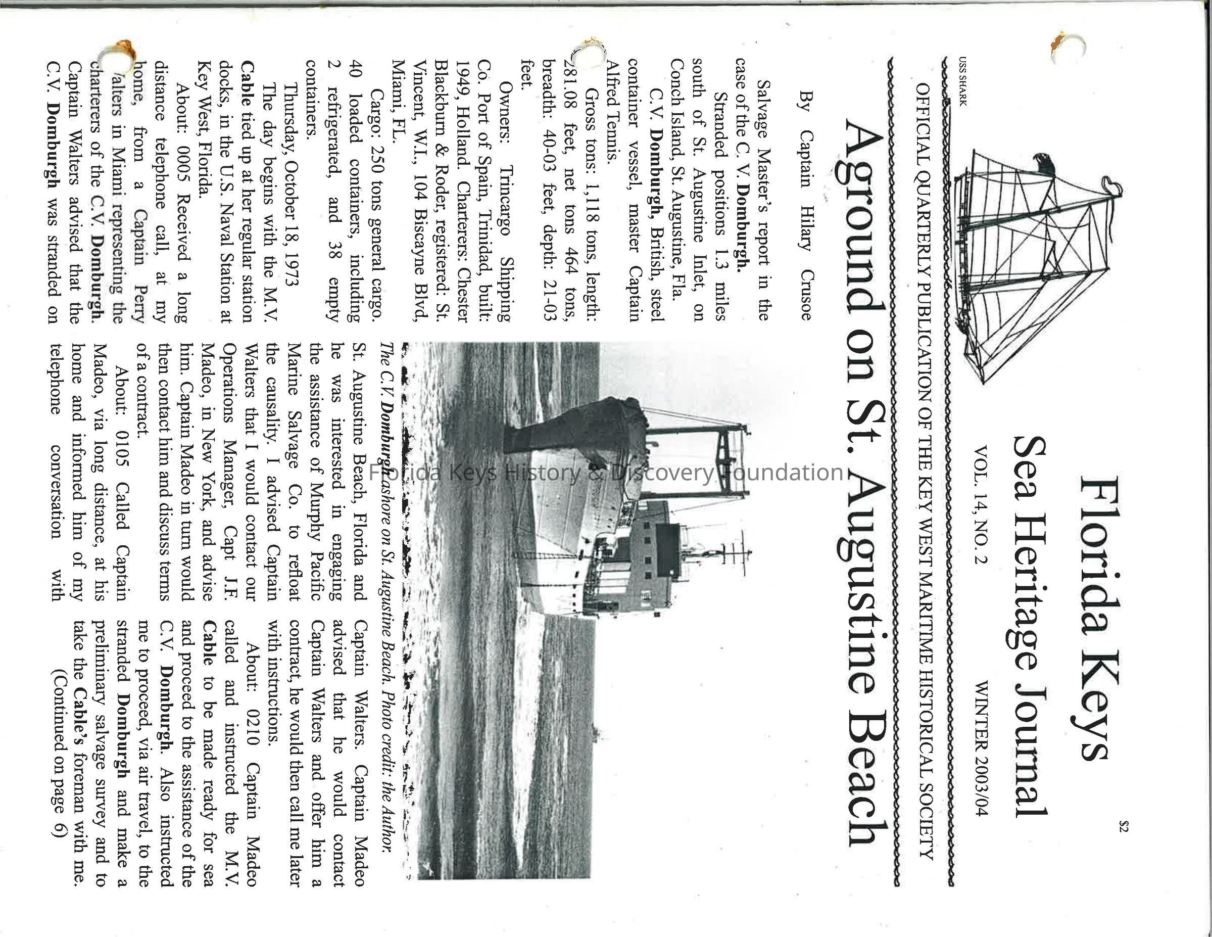 Florida Keys Sea Heritage Journal, Volume 14, Number 2, Winter 2003/04Description