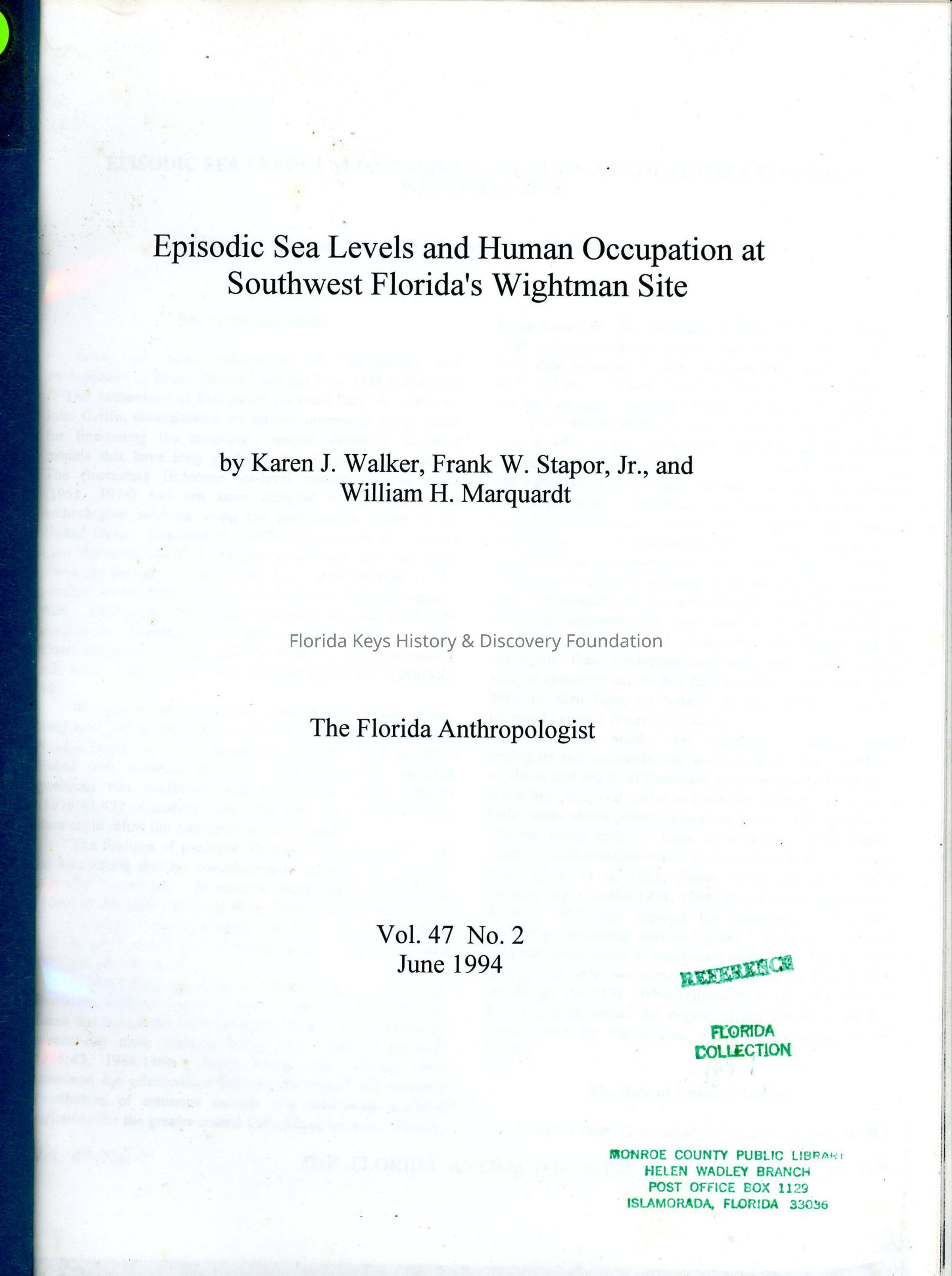 Episodic Sea Levels and Human Occupation at Southwest Florida's Wightman SiteEntry/Object ID
