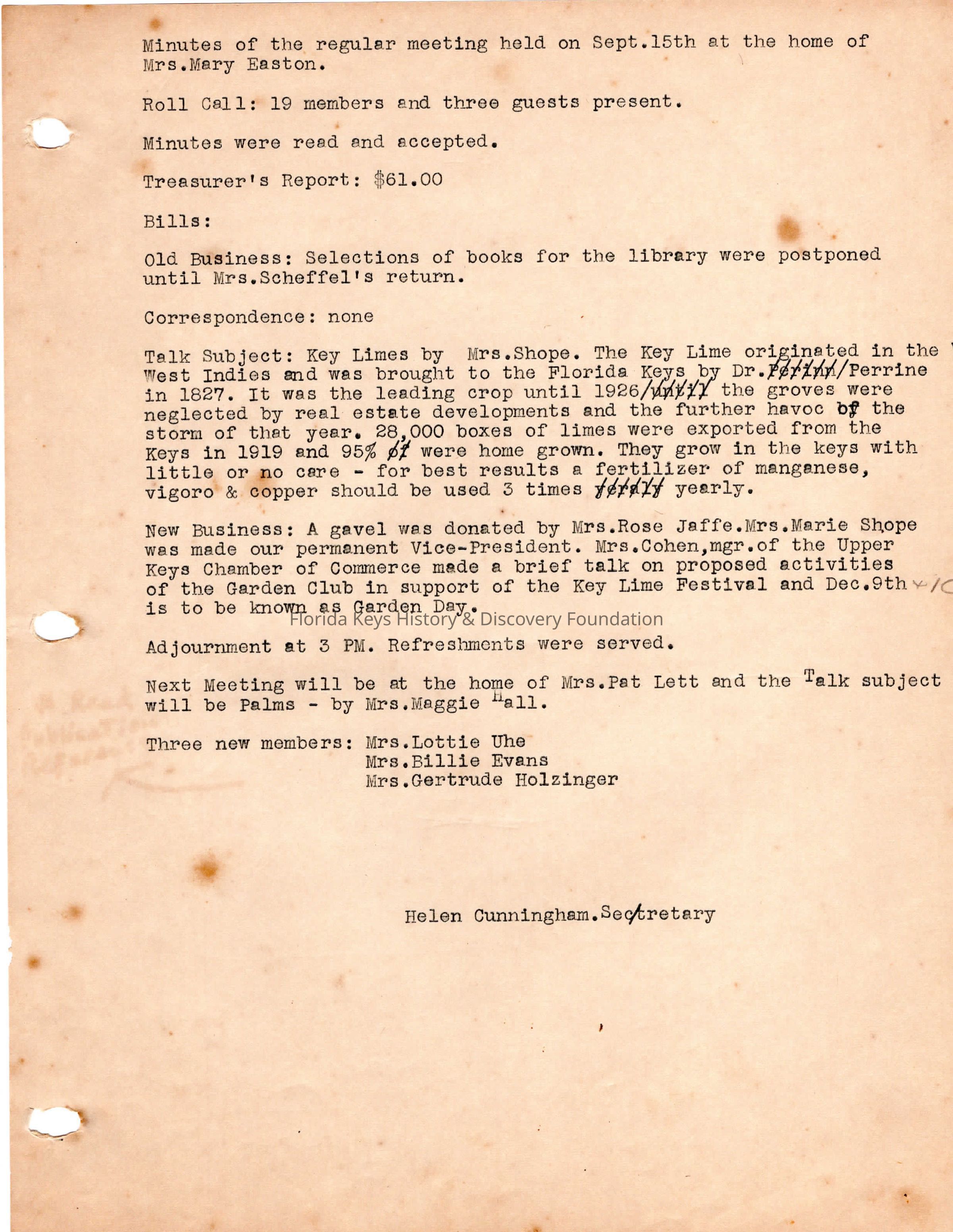 Mary Easton, Marie Shope, Rose Jaffee, Carolyn Cohen, Maggie Hall, Lottie Uhe, Gertrude Holzinger, Mrs. Billie Evans, Patricia Lett, Garden Club of the Upper KeysCreated By