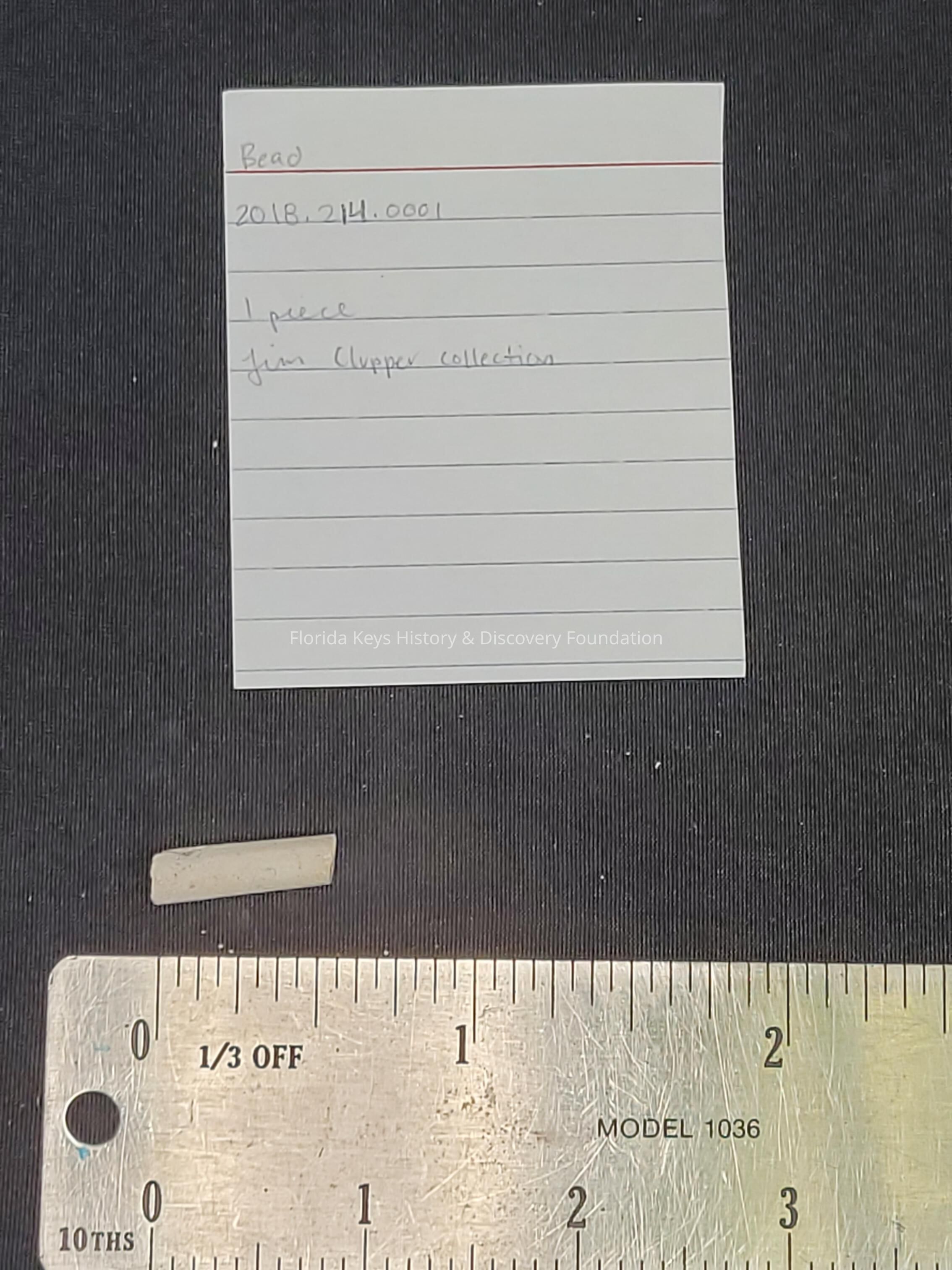 One bead - potentially made of shell or bone collected from unknown historic site.Context