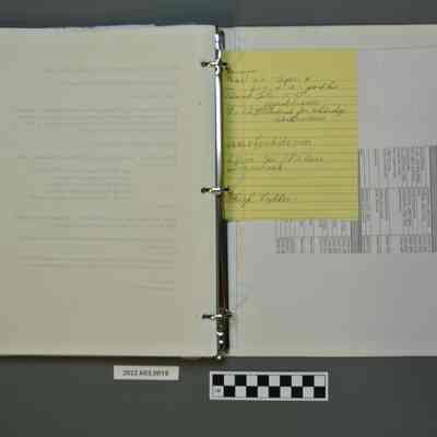 Binder measures 11.8 x 10.1 x 1.6 inches and documents are of various sizes.Context