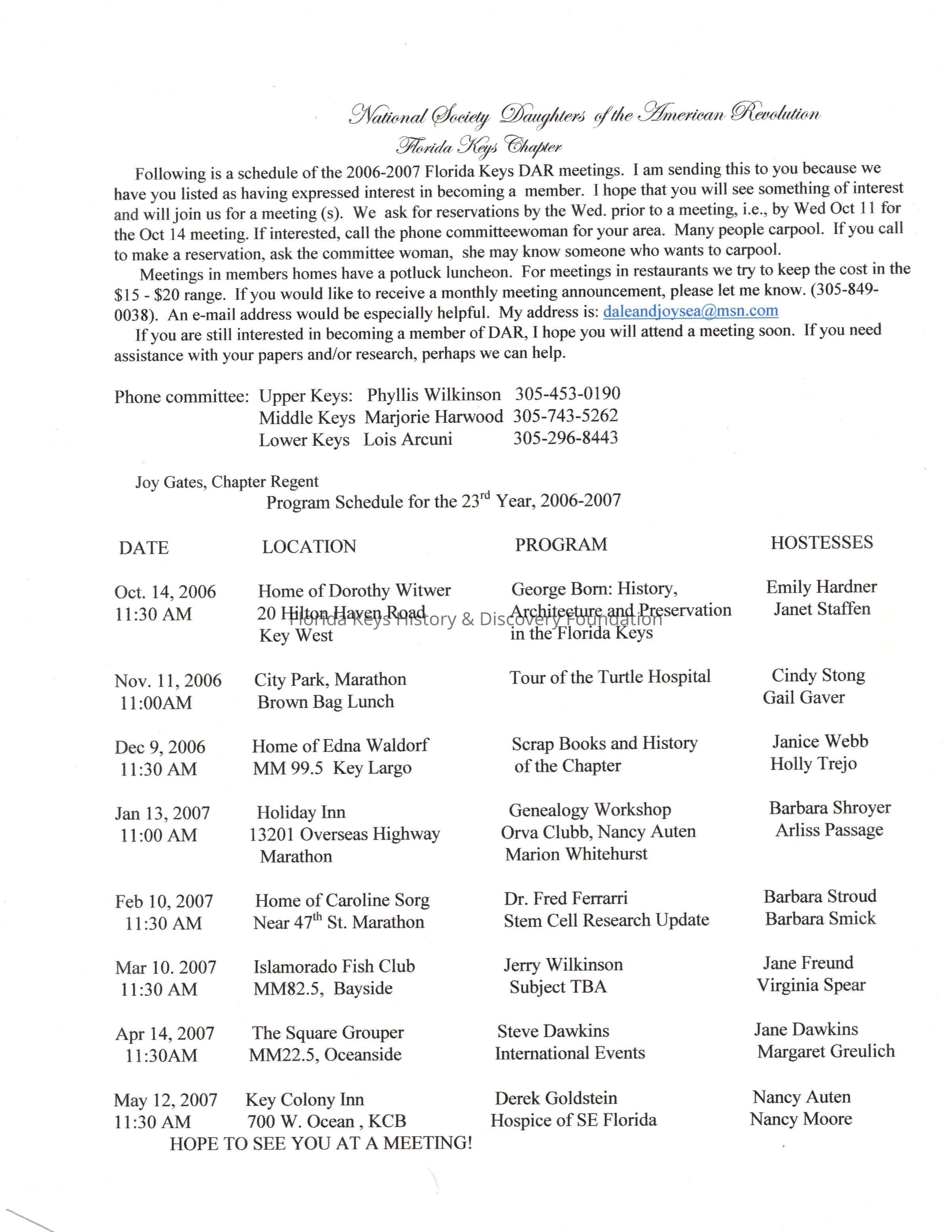 DAR Attendance, 2006, Meeting Minutes, Correspondence, NSDARScope and Content
