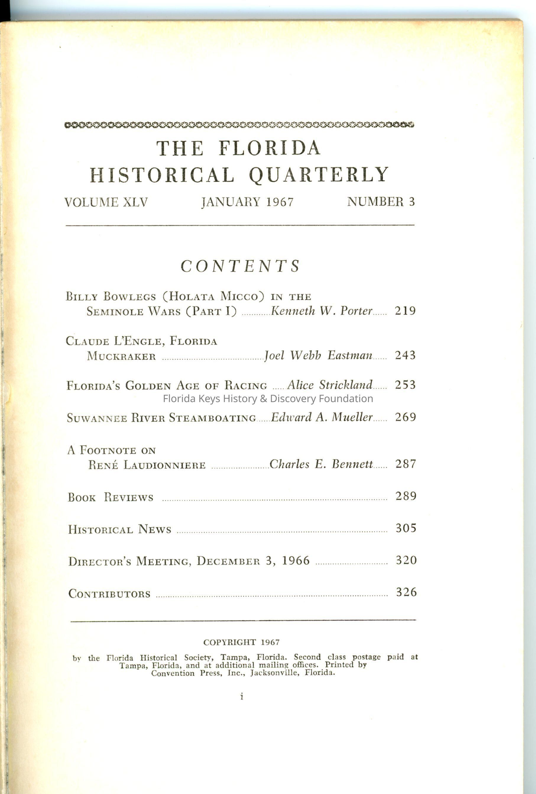 The Florida Historical Quarterly Vol.45 No.3 (January 1967)Entry/Object ID