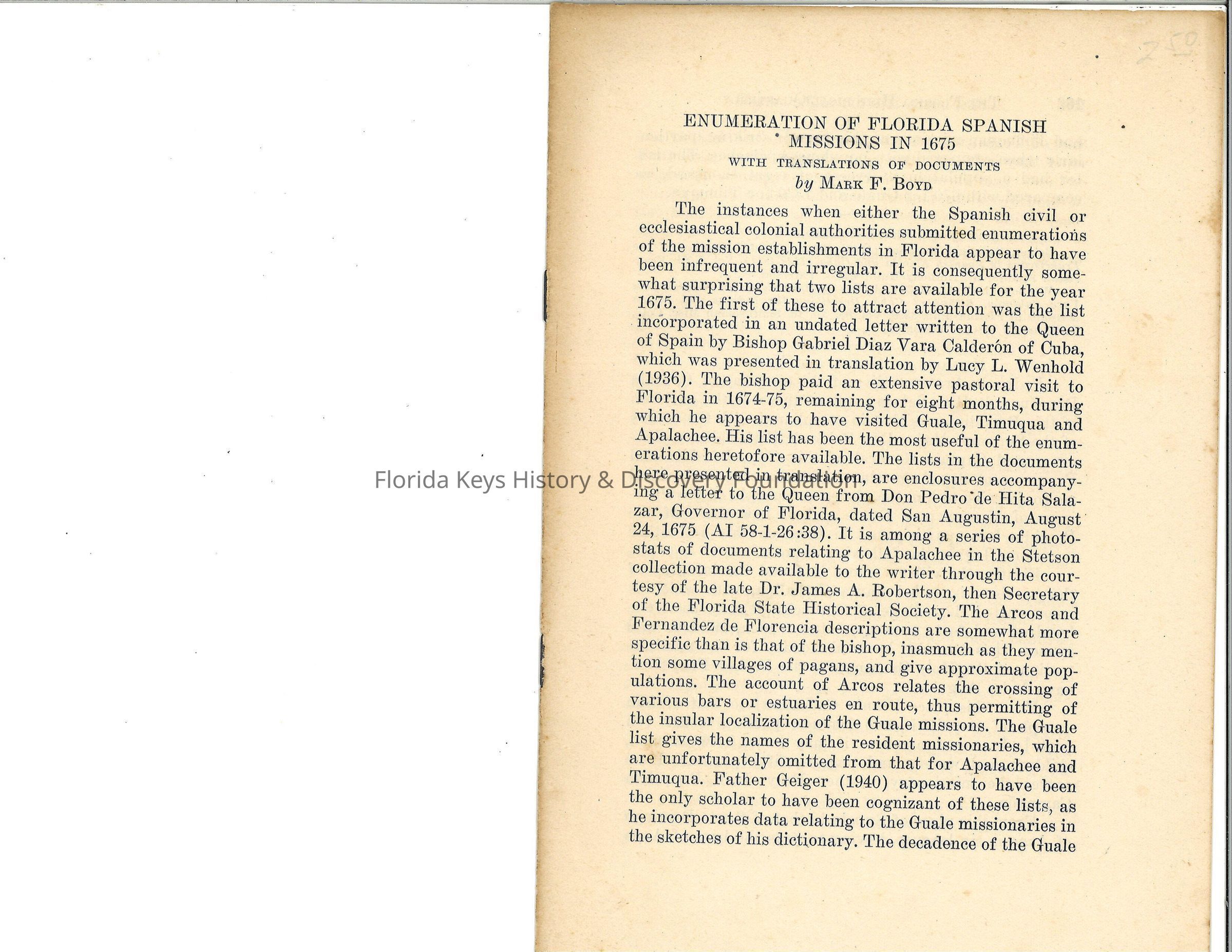 Enumeration of Florida Spanish Missions in 1675Entry/Object ID
