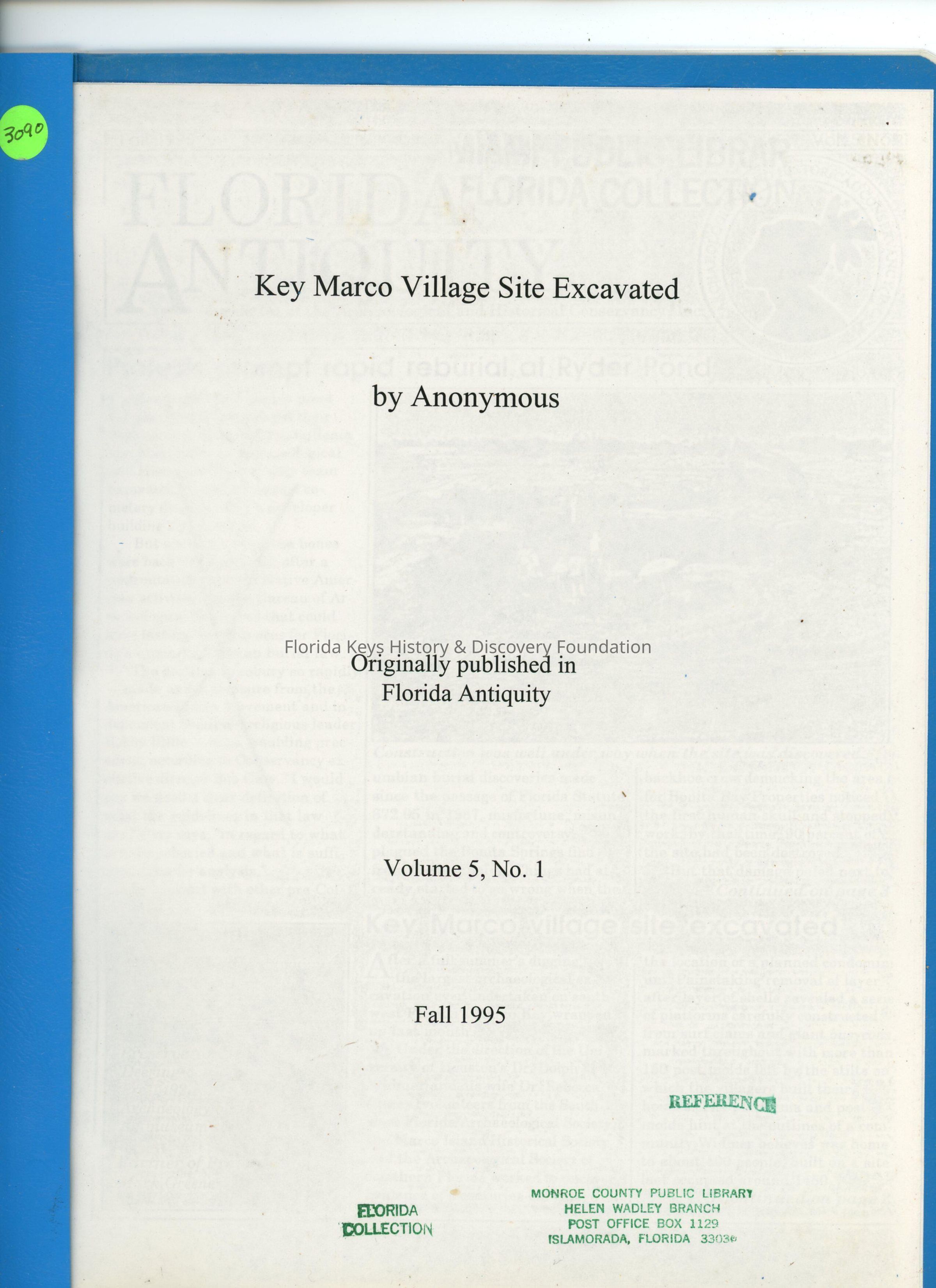 Key Marco, Archaeological Sites, Native American, AnthropologyCollection
