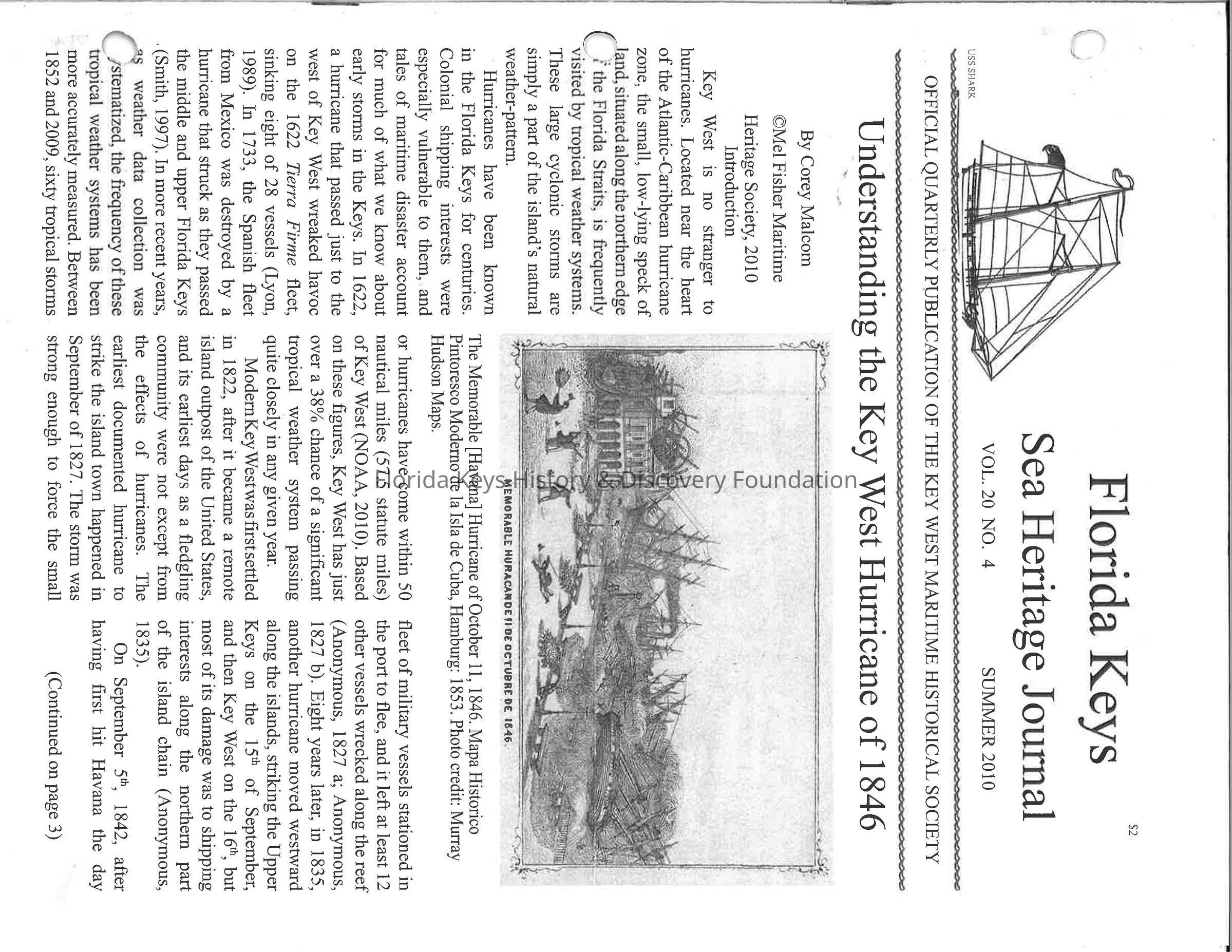 Florida Keys Sea Heritage Journal, Volume 20, Number 4, Summer 2010Description