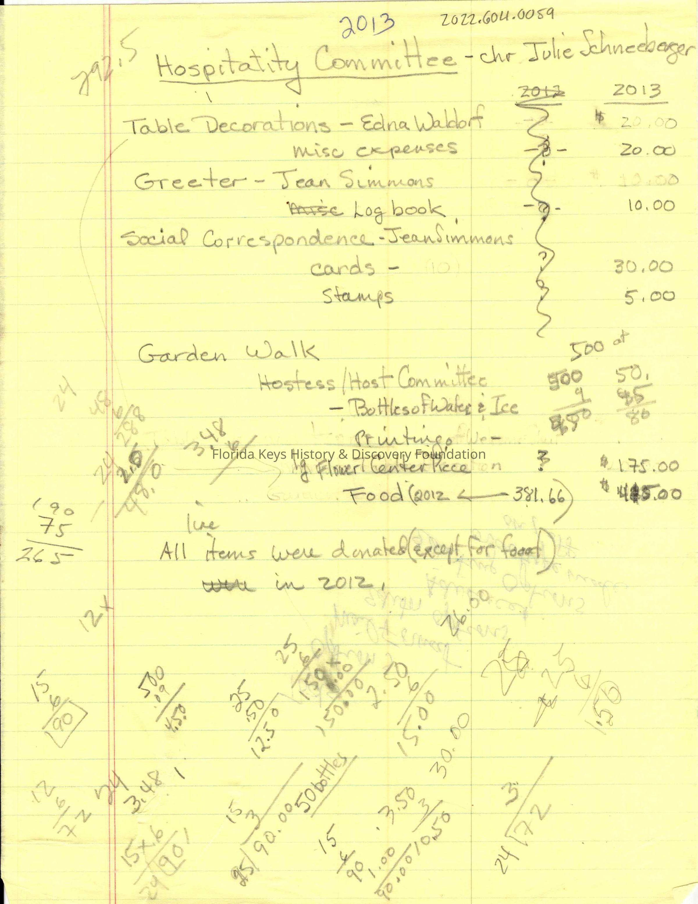 Handwritten Hospitality Committee NotesEntry/Object ID
