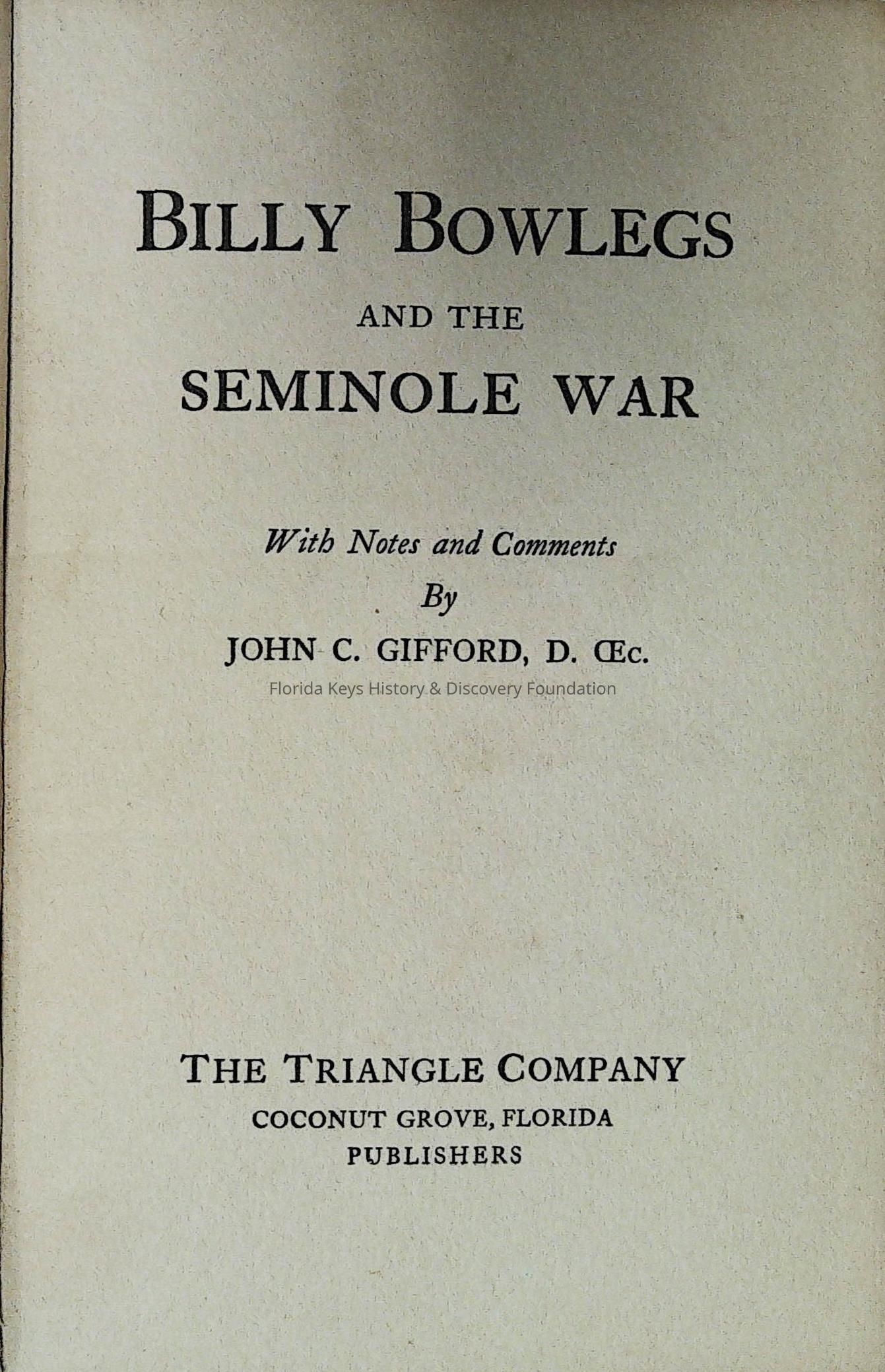 Book about Billy Bowlegs, Chief of the Seminole TribeCollection