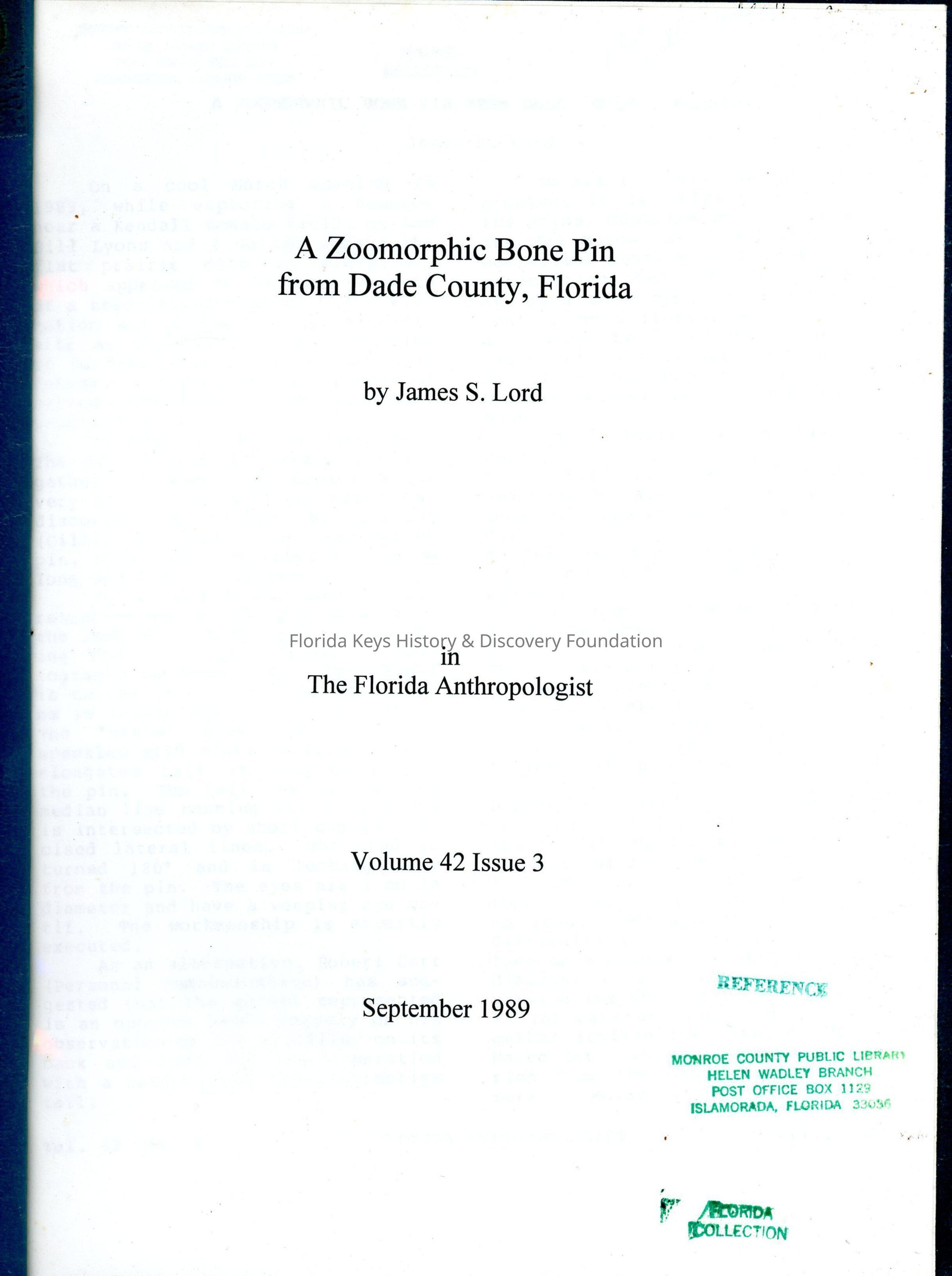 A Zoomorphic Bone Pin from Dade County, FloridaEntry/Object ID