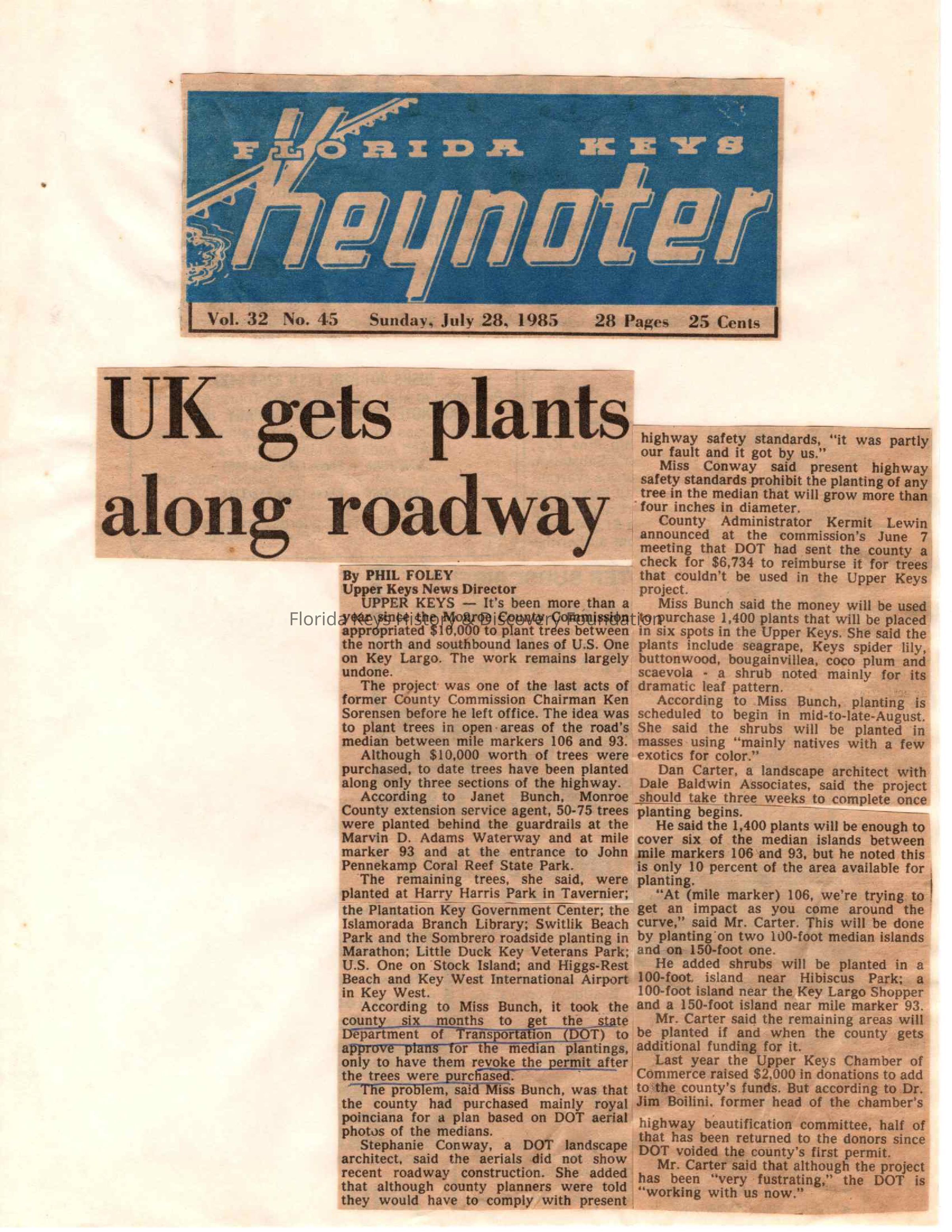 This is cut out of the Florida Keys Keynoter with an article mentioning a beautification project of the GCUK. This project is planting trees along the sides of the highway.Collection
