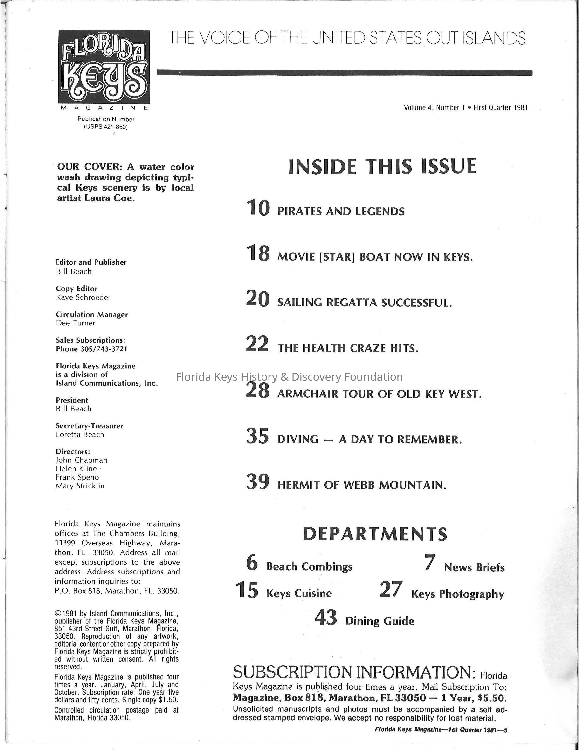 Florida Keys Magazine, First Quarter, 1981Entry/Object ID