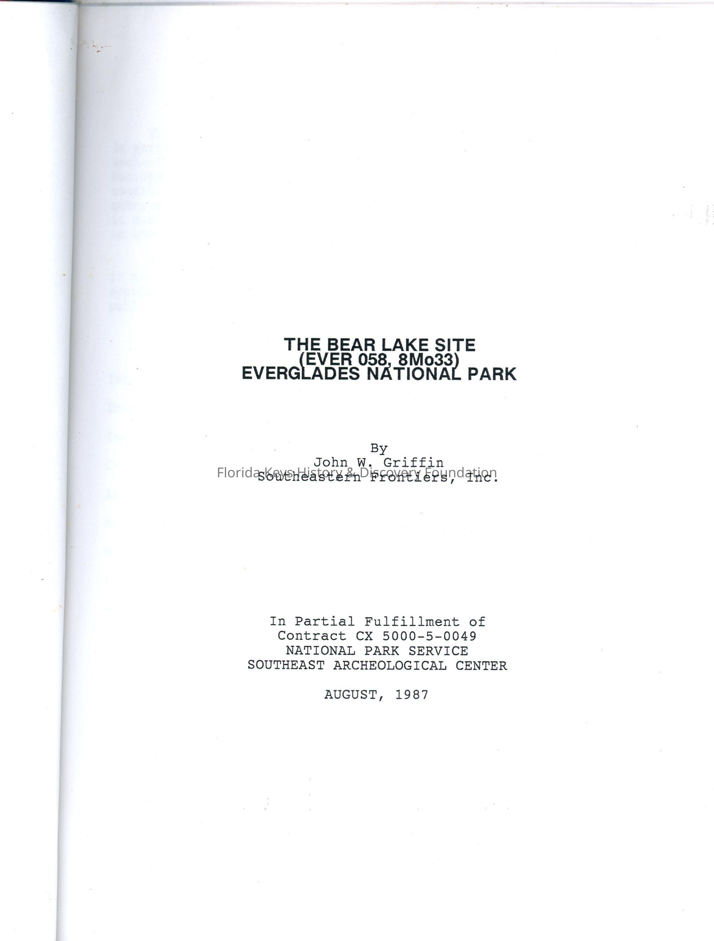 A report prepared for the National Park Service, Southeast Archeological CenterCollection