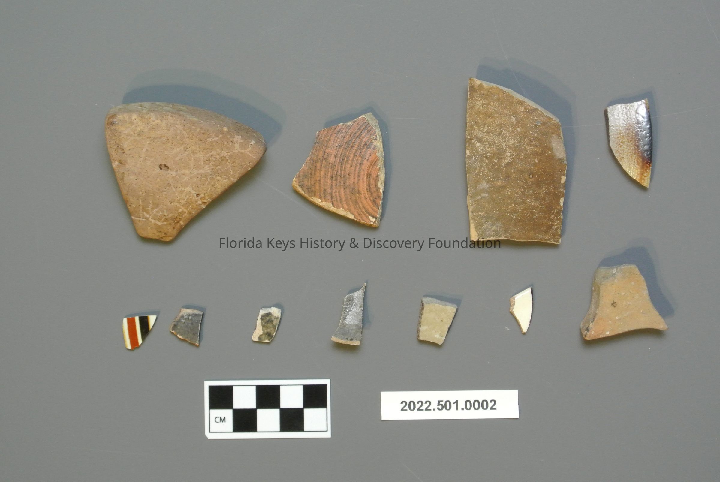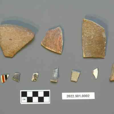 Group of ceramic sherds, some glazed, some unfinished.Collection