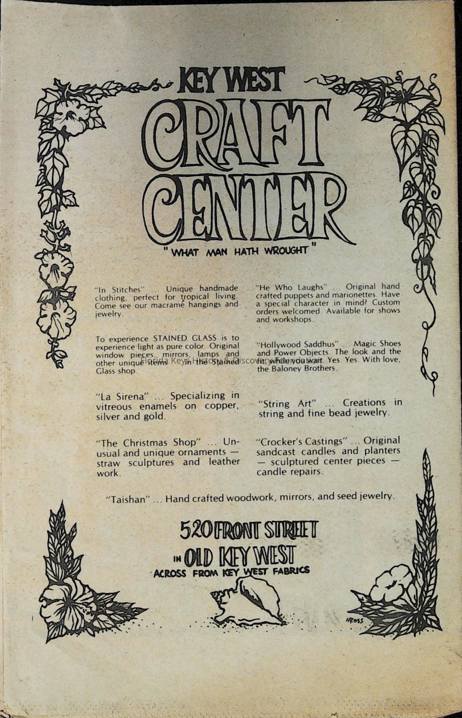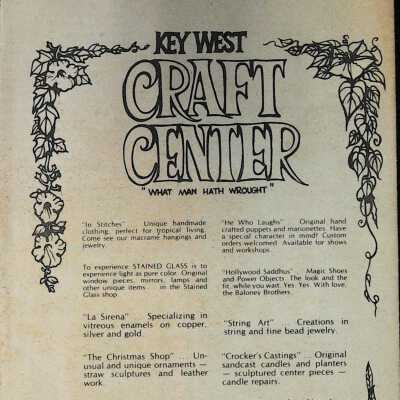 Short, newspaper-style pamphlet with information and advertisements for craft shops and galleries in Key WestCollection