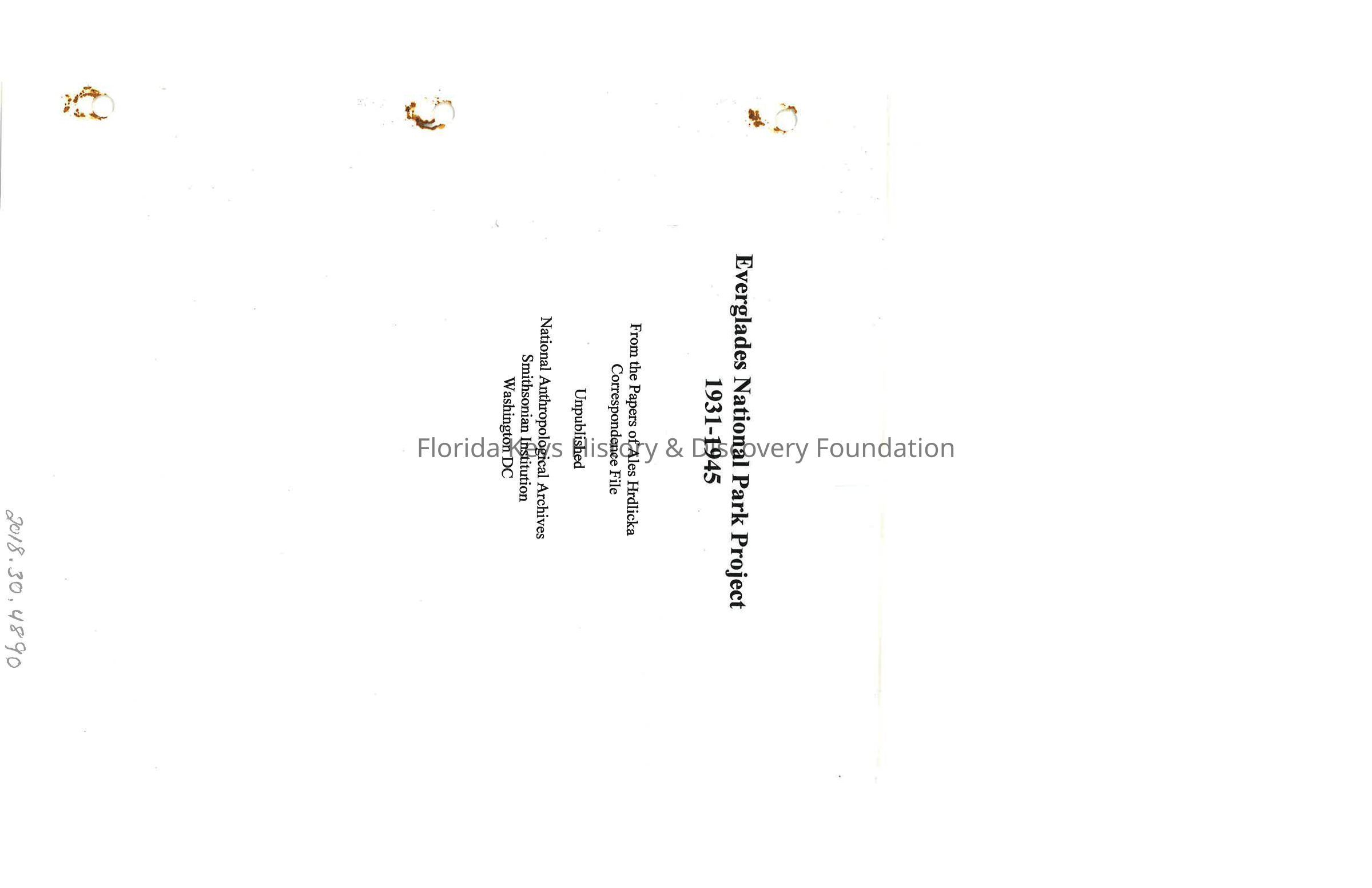 Everglades National Park Project 1931-1945 from the Papers of Ales Hrdlicka Correspondence FileEntry/Object ID