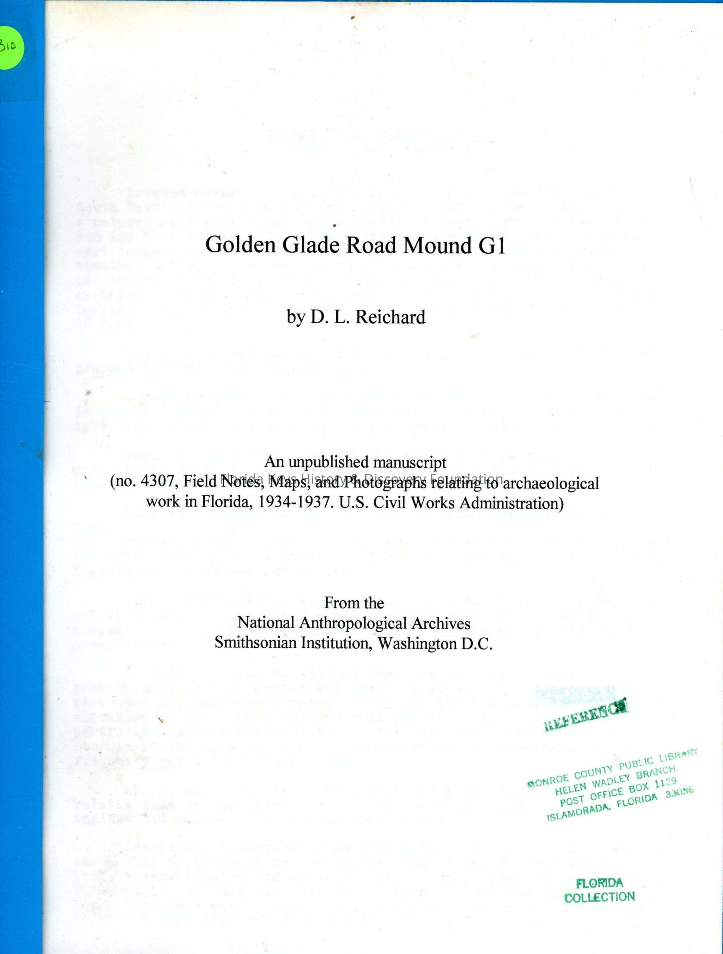 "An Unpublished Manuscript (no.4307, Field Notes, Maps, and Photographs relating to archaeological work in Florida, 1934-1937. U.S. Civil Works Administration)Context