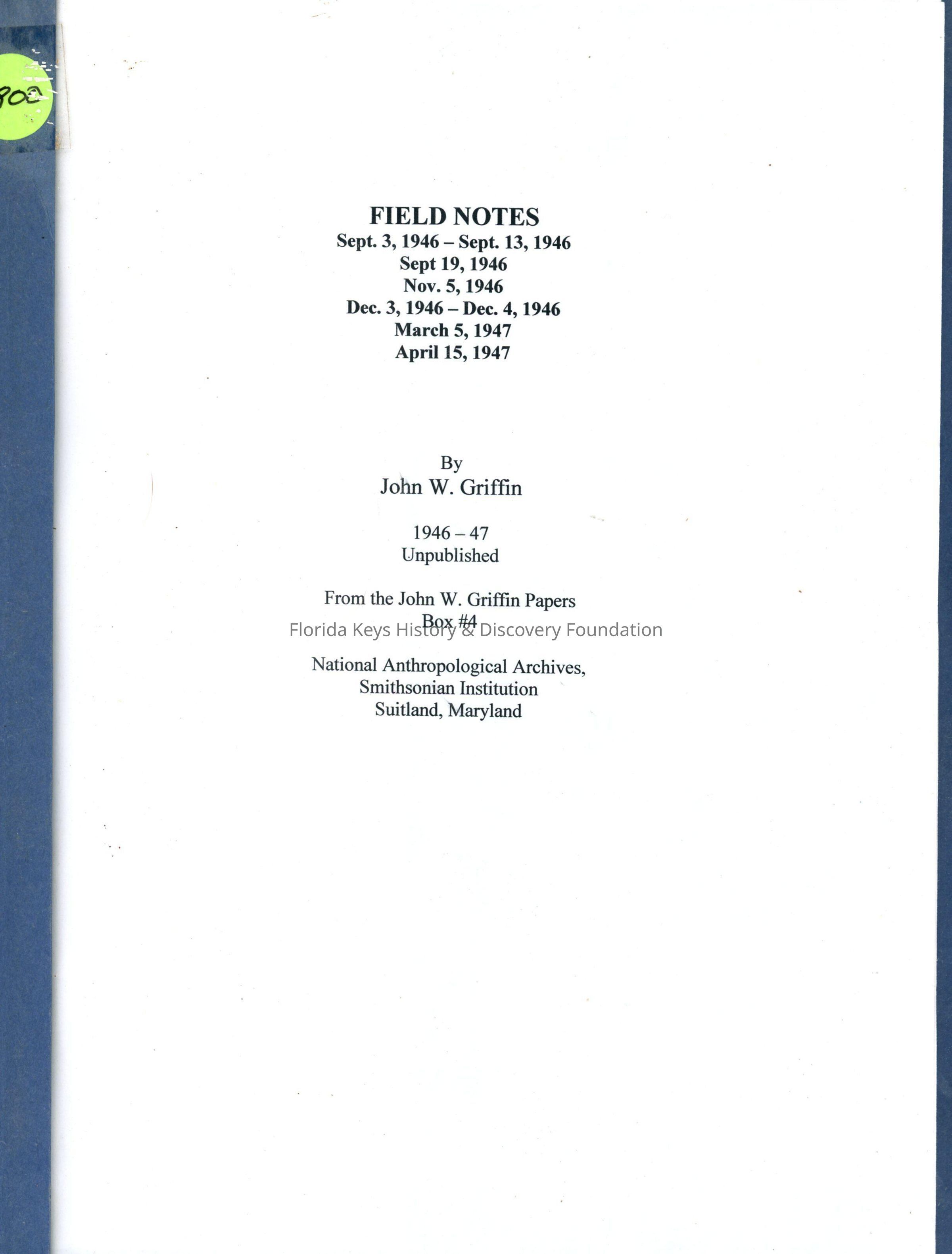 Field Notes (1946-1947)Entry/Object ID