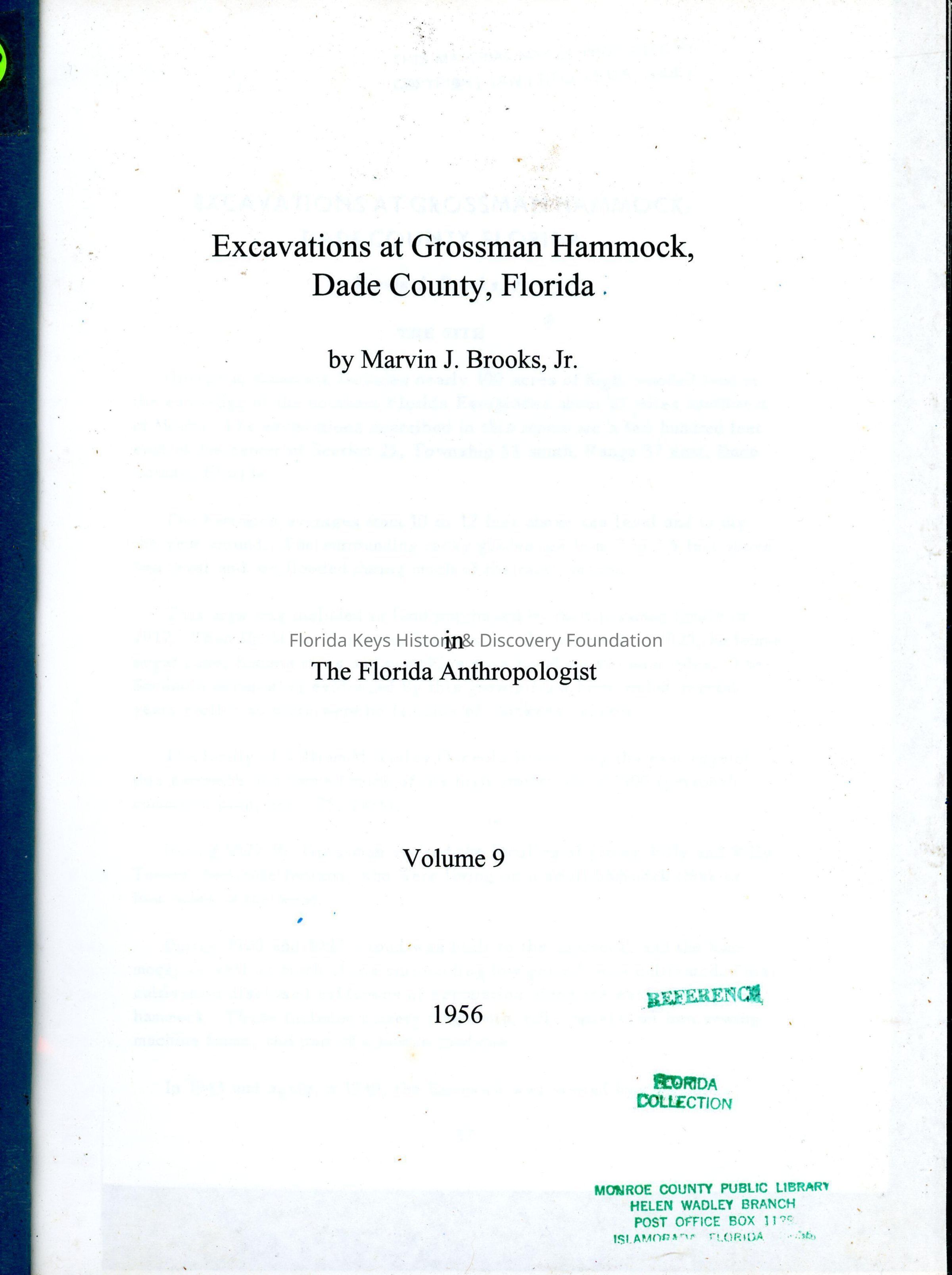 Excavations at Grossman Hammock, Dade County, FloridaEntry/Object ID